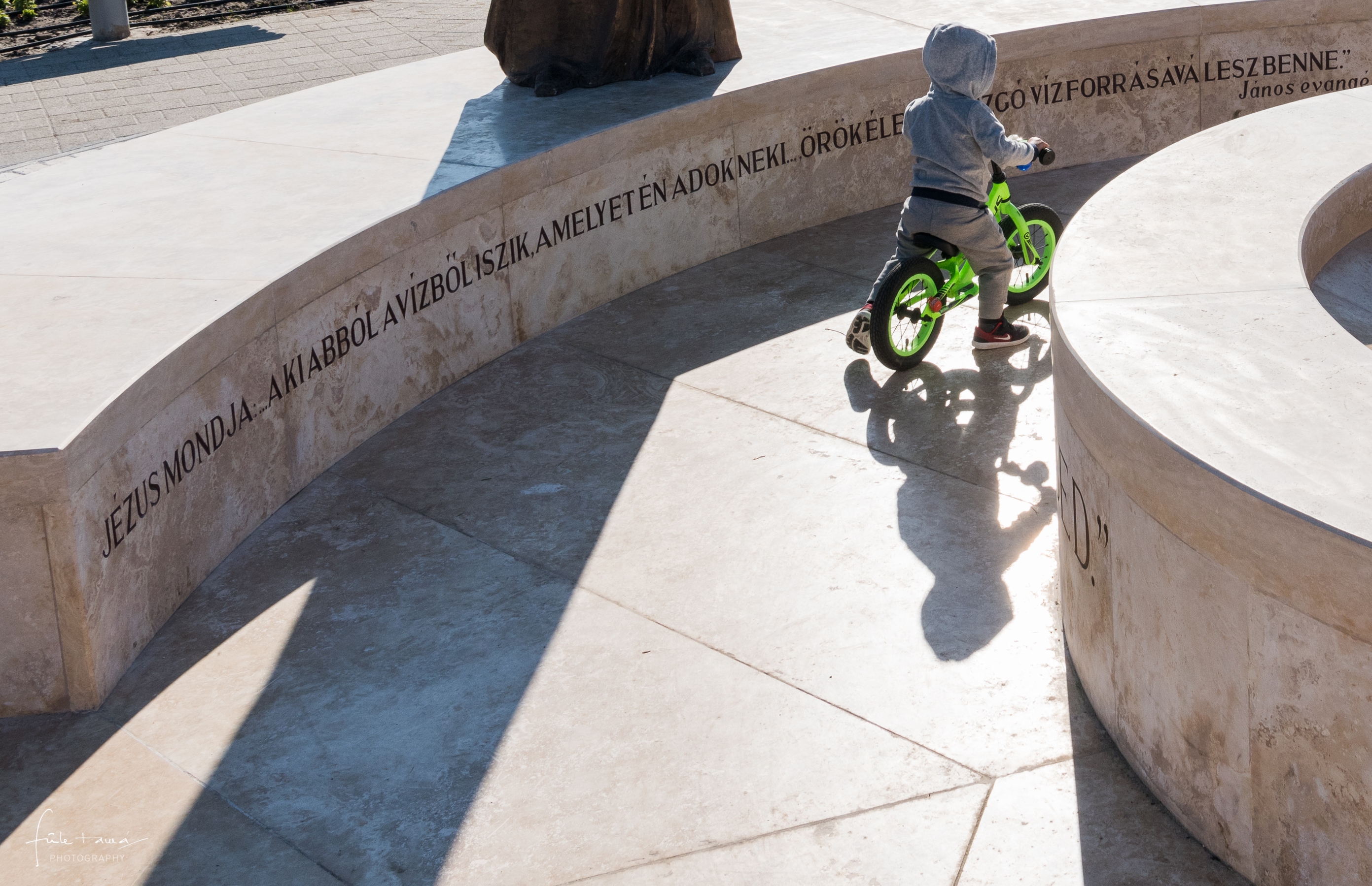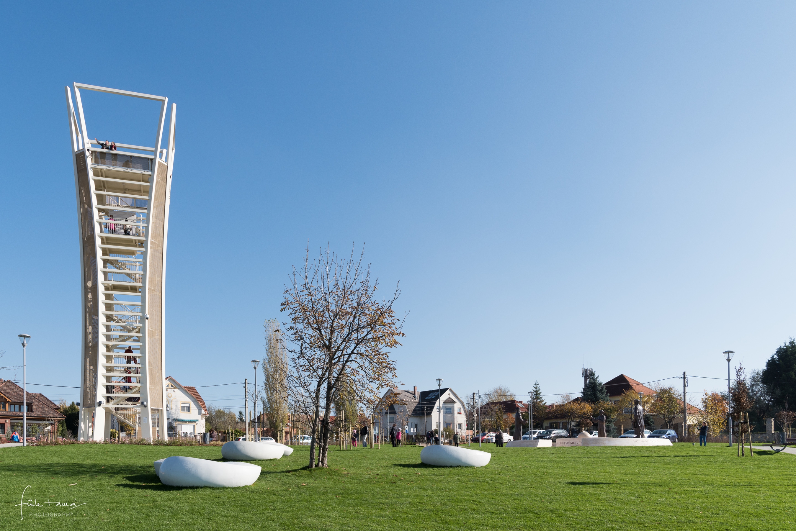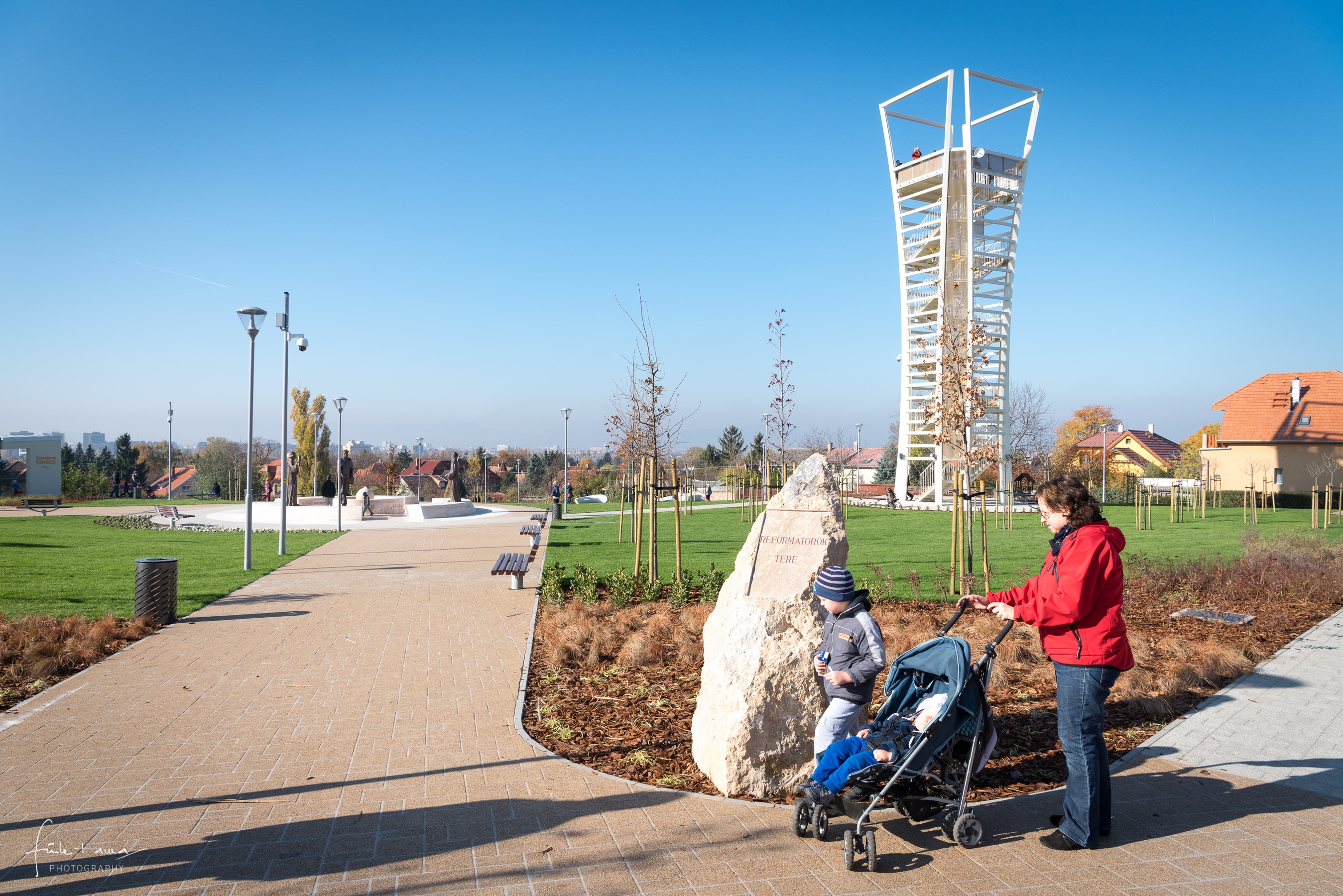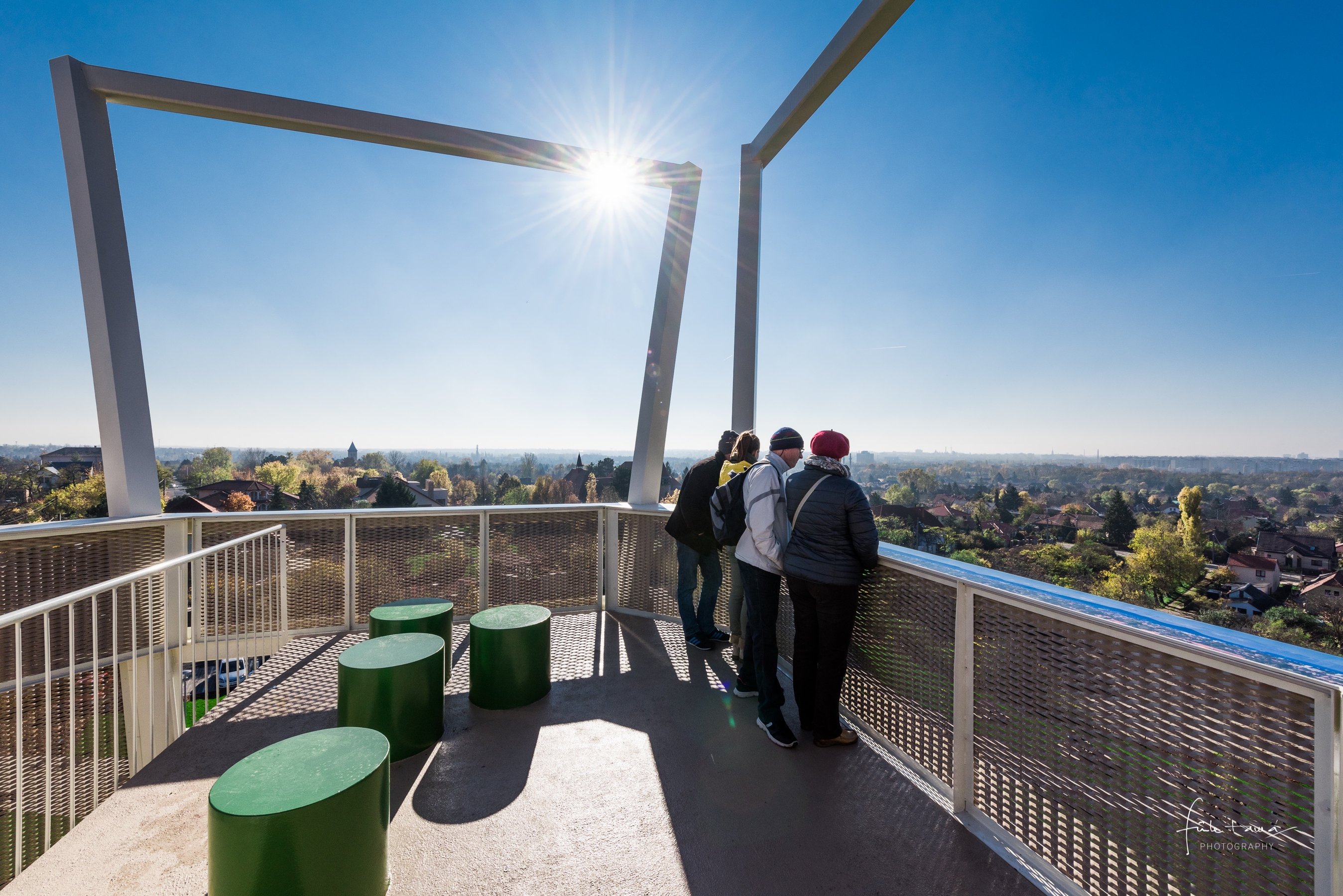 A gyönyörű napsütéses őszi időben kisgyerekes családok, fiatal és idősebb párok sétálnak, bicikliznek, játszanak, veszik birtokba a térbútorokat, másznak fel a 17 méter magas kilátóba, ahol a Gellérthegy magasságából csodálhatják meg Budapest panorámáját.