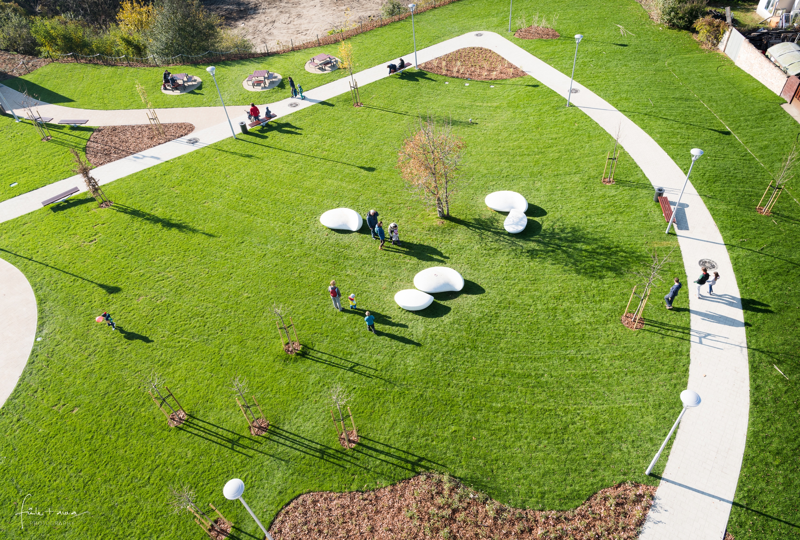 A korábban beépítetlen területen 12 000 négyzetméteres közösségi park, kilátó és kávézó is helyet kapott.