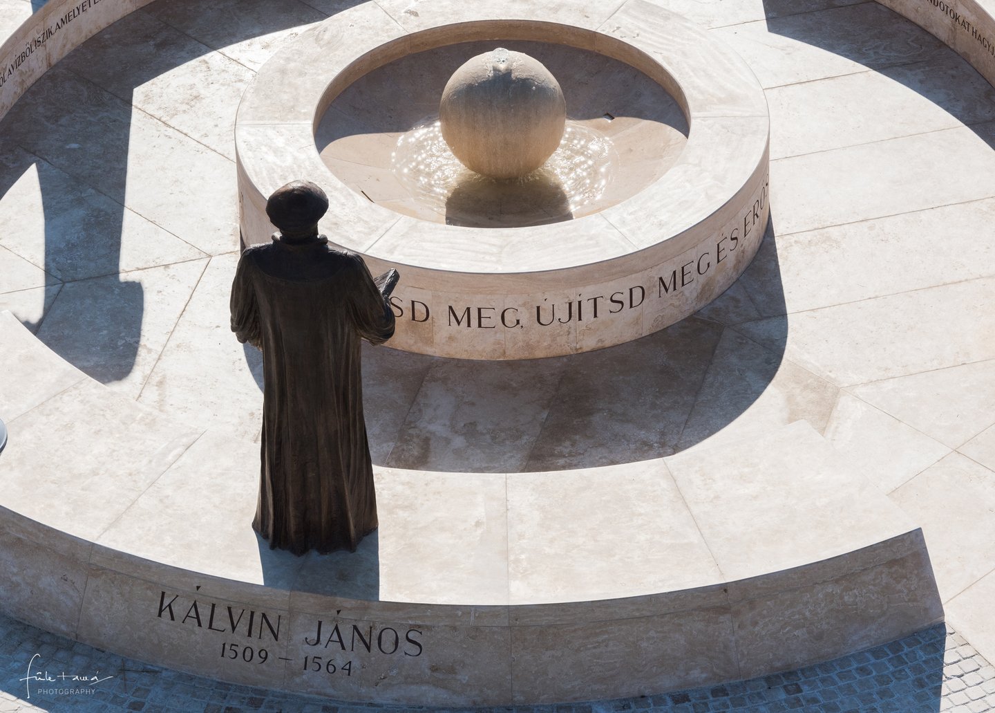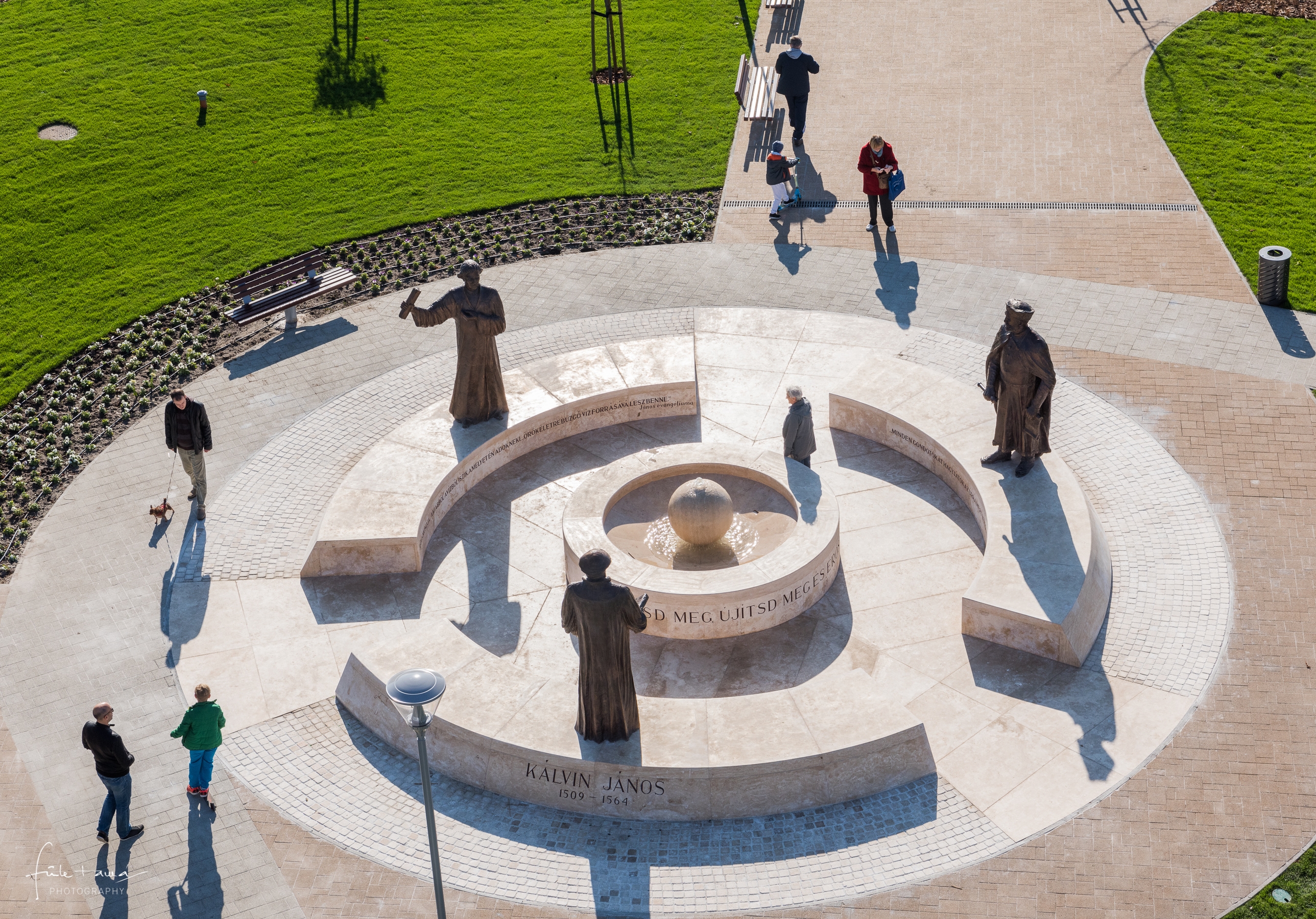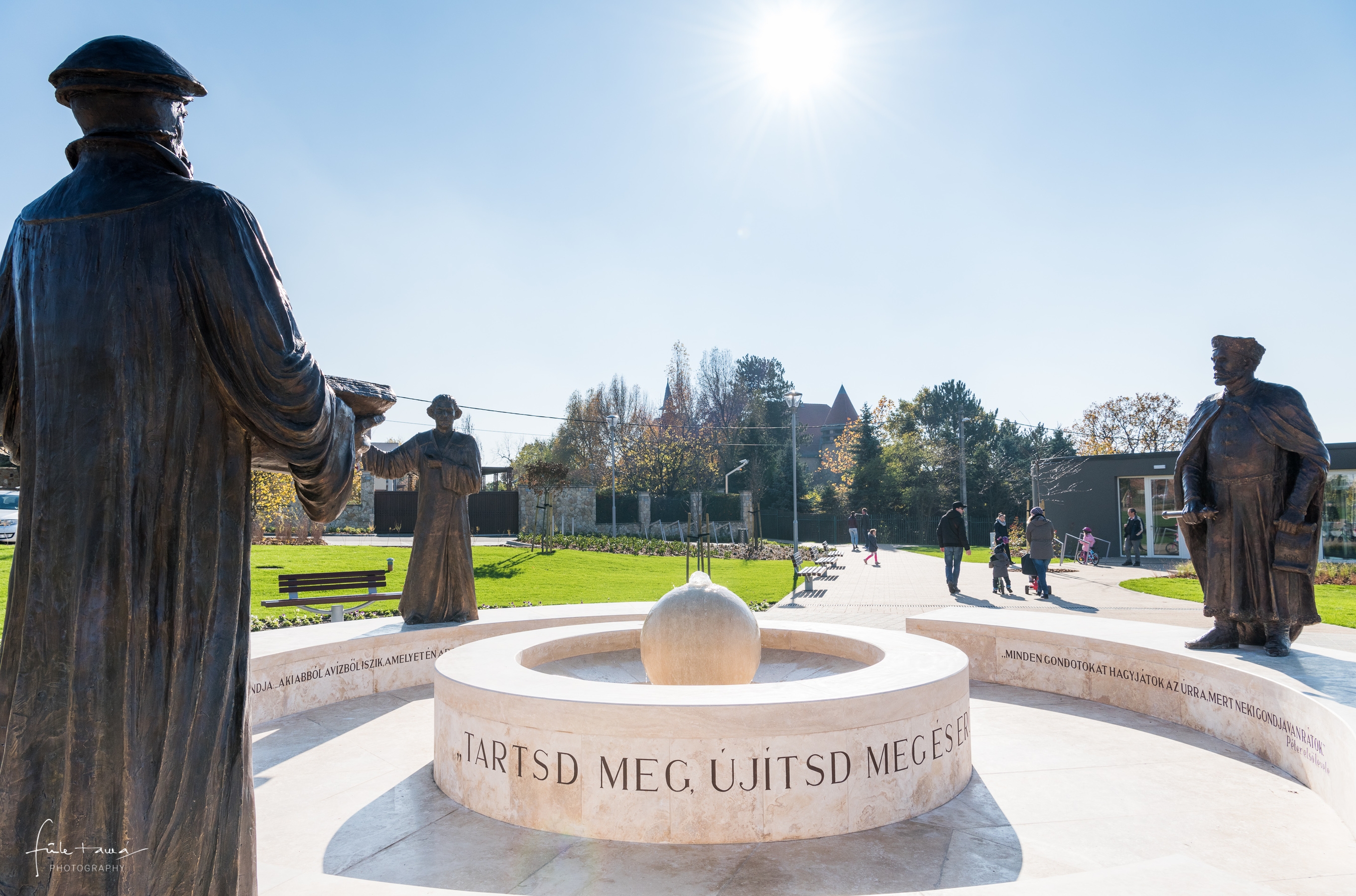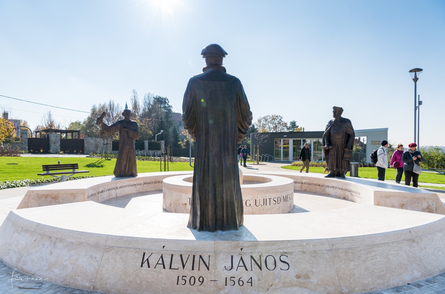 És közben ismerkednek a szoborcsoporttal. Luther Márton és Kálvin János reformátor, valamint Bocskai István egész alakos szobra a reformáció üzenetét idézi: