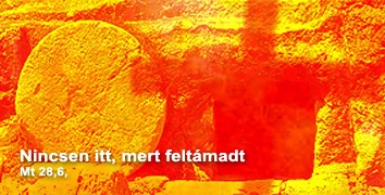 „A Názáreti Jézust keresitek, aki megfeszíttetett; föltámadott, nincsen itt; ímé a hely, ahová őt helyezték. De menjetek el, mondjátok meg az ő tanítványainak és Péternek, hogy előttetek megy Galileába; ott meglátjátok őt, amint megmondta nektek."