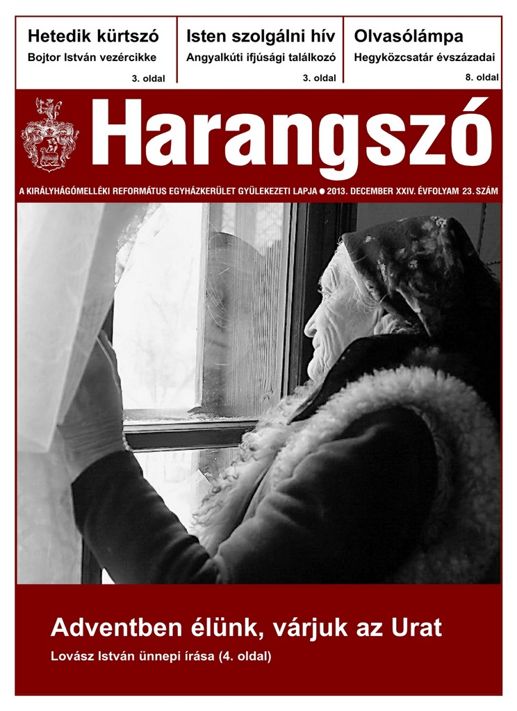 Már nyomdában van a Harangszó adventi lapszáma, amely megújult címlappal jelenik meg. A Címlaptéma című új rovatot Lovász István jegyzi: Adventben élünk, várjuk az Urat címmel. A vezércikk is a közelgő ünnepre tekint. Szerzője Bojtor István. Írásának címe: Zakariást megáldja Isten.