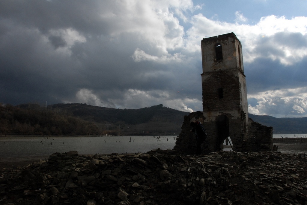 Bözödújfalu névtábláját a földön találjuk meg, én állítom föl. Persze sohasem tudok szívszorítás nélkül gondolni erre a településre. Története hosszú és fájdalmas, érdemes utánaolvasni. A víztározó építése miatt 1985-ben kezdődött a falu kitelepítése. A kilencvenes évek elején teljesen elárasztották a falut, két megmaradt templomával együtt víz alá került. Mindössze tizenkét ház menekült meg az elöntéstől, ezekben ma is lakik néhány család. A legnagyobb pusztítás nem is csak az épületekben esett, hiszen egy egyedülálló és csodálatos vallási egységben élő falut, közösséget, szellemiséget is elpusztítottak, amikor a víz elnyelte az életet. Legtovább az unitárius és a katolikus templom dacolt az idővel, hirdette lényével és köveivel a lassú halált. Amikor néhány éve a tartógerendáival együtt a kereszt is leesett a torony tetejéről, már úgy tűnt, hogy az utolsó épület is feladta.