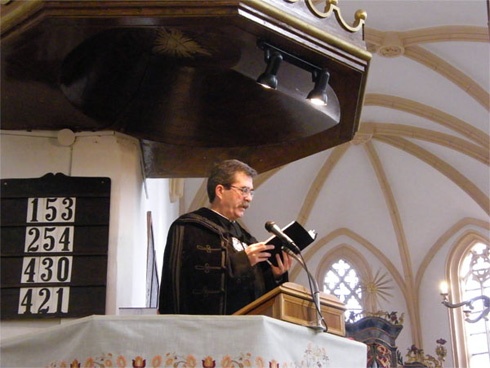 A püspök felszólította a híveket: ragaszkodjanak vallásukhoz, ugyanakkor megállapította, hogy a lelki tudatosság kiveszőfélben van. A püspök fontosnak tartja, hogy a szülők átadják a hitet, az ahhoz való ragaszkodást gyermekeiknek. Miután méltatta Kálvin nagyságát, jelentőségét, elismerte, hogy a Heidelbergi Káté nehézkes nyelvezetű, át kellene írni modernebb magyar nyelvre. Az 1559-es marosvásárhelyi zsinat kapcsán kifejtett, ezt a magyar református egyház születési dátumának tekinti.