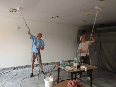 - A templomban tisztasági festést végeztünk, az új épületben szintén festünk és a fafelületeket mázoljuk. A lelkészlakás tetején a koporsófödémre készítjük el a szigetelést, ezen kívül járdát, lépcsőt építünk. A régi épület körül is voltak mázolási, csiszolási munkák.