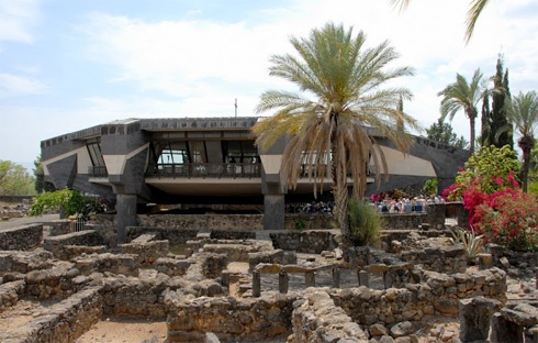 A feltételezhetően Péter háza fölé épített templomot bárka formájúra tervezték, üvegpadlóján át látni Péter és Jézus hajdani szálláshelyét.
