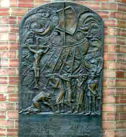 Oláh Szilveszter azt mondja, a gályarabok úgy érezték, Krisztus keresztjét hordozzák, ezért jelenítette meg a bronz dombormûvön az ő alakját is. Munkája – melyen külön megemlékezik Marossi János lelkipásztorról – a templomon kívül kapott helyet, így az utcáról bárki láthatja.