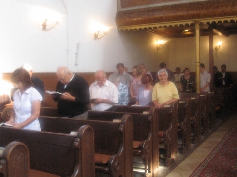 Kiderül, nem én voltam az egyetlen utas, aki vasárnap reggel az evangélikus templom felé tart – református istentiszteletre. Az „Erős vár a mi Istenünk" felirat alatt nyíló templomajtóban fekete palástjában fogadja az érkezőket a lelkipásztor. Mindenkivel vált néhány szót, érdeklődik az idősek, betegek hogyléte iránt. Ötven kezet szorít meg ezen a délelőttön. Egy asszony kétségbeesve, panaszos hangon sírja el az otthoni terheket. Ezúttal ő kapja meg az istentisztelet végén a családi bibliát, hogy egy héten át abból merítsen erőt az övéivel együtt.