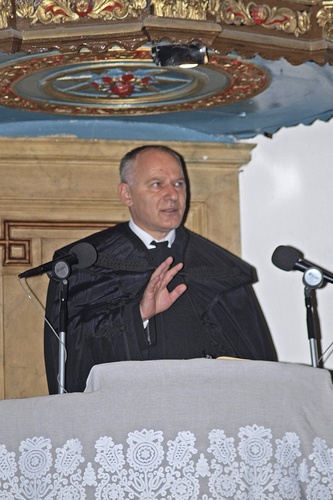 Lelkipásztorunk, Szabó Gábor ihletett szavakkal számolt be a templomfelújítás időszakáról. Nem azt sorolta, hogy a Dunamelléki Református Egyházkerület 11 000 000 Ft-tal, a Délpesti Református Egyházmegye 10 000 000 Ft-tal, a gyülekezet és a város adakozó polgárai 12 512 442 Ft-tal, az egyházközség 5 391 355 Ft-tal járult hozzá a felújítás költségeihez. Ezek az adatok pontosan szerepeltek az ünnepség szép képes meghívólapján. Lelkipásztorunk az ünnepi alkalommal nem a munka költségeit s az adományozók listáját sorjáztatta, mert fontos ez, de nem a legfontosabb. Még csak nem is a megépült és megújult templom a leglényegesebb, mondta, hanem a minket építő és megújító Isten. Róla tett bizonyságot. Az ő tetteiről, csodáiról beszélt: elmondta, hányszor adta a gondviselő Isten jelét annak, hogy kegyelmében hordozza a gyülekezet közösségi életének legfontosabb színterét. Minden kegyelem. A nehézségek és építkezési állomások helyett bizonyságot tett Istenről: mit tett velünk az Úristen a felújítási időszakban? Az egyik csoda: amikor belekezdtek a konkrét építkezésbe másfél évvel ezelőtt, semmi sem volt hozzá. Nem volt jó terv, kivitelező, pénz. Isten kegyelmes módon kihozott Bennünket a nehéz helyzetből. Magára mutat az Úristen: én vagyok az ajtó, én vagyok az út, én vagyok az igazság, én vagyok az élet. A következő csoda 2011. július 20-án következett. Óriási vihar tombolt városunkban, mindenkinek volt kára. Nagy pusztítást végzett a református temetőben is. A csoda: a felállványozott, nyílászárók nélküli templomban semmilyen kár nem esett. Ezen a napon konkrétan érezhető volt, hogy Isten „ítélete" mindig kegyelem. A harmadik csoda személyes vallomás, önvizsgálat volt: Nem volt pénz, talán már kedv sem, erő sem - és lett! Csodálatos módon minden szükségest megkaptunk ehhez a munkához, s amikor kész lett templomunk kívül és belül, együtt takarítottuk. Mikor erre gondolt vissza, egészen áttüzesedett a hangja: „És látjátok, ez a csoda az, amit senki más, csak Jézus Krisztus munkálhat ki bennünk. Mi nem adunk esélyt egymásnak a békülésre, ő meg szépen kimunkálja azt. Milyen lenyűgözően egyszerű és tiszta evangélium. Miközben takarítod a templomot, a legnagyobb csoda részese vagy: békességben vagy a másikkal. Miközben szépül a templom kívül, megszépülsz, megtisztulsz Te magad is belül. Ilyen csodálatos Istenünk van, ezért beszéltem most csak Róla." Jézus Krisztus munkálkodása tiszta, egyszerű evangélium: a templomtakarításkor nemcsak az épület szépült meg, hanem megszépül, megtisztul az ember is, amiért „legyen neki dicséret, dicsőség, tisztesség és hálaadás. Soli Deo Gloria!" Igen, ez valóban így van, hasonló fogalmazódott meg Orisek Márta testvérünkben a templomtakarítás alkalmával: