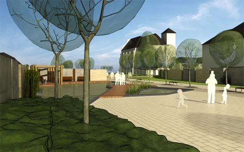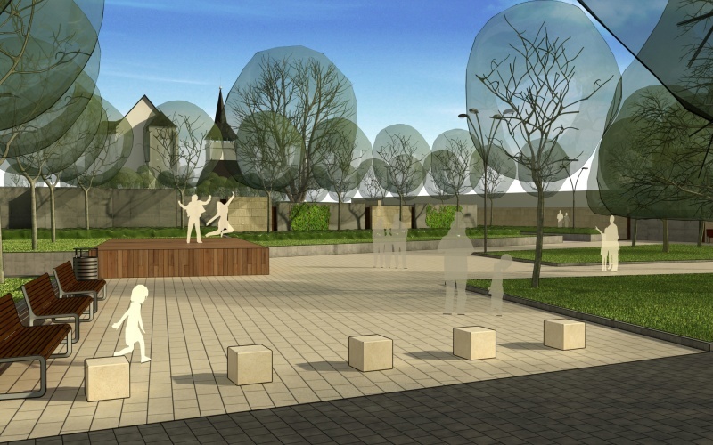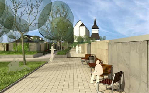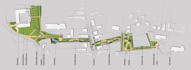 A családi házas övezet két szélén elhelyezkedő katolikus templom és minorita kolostor és a református templom összekötése négy korábbi építési telek, és meglévő keresztutak sétaúttá minősítésével jöhet létre