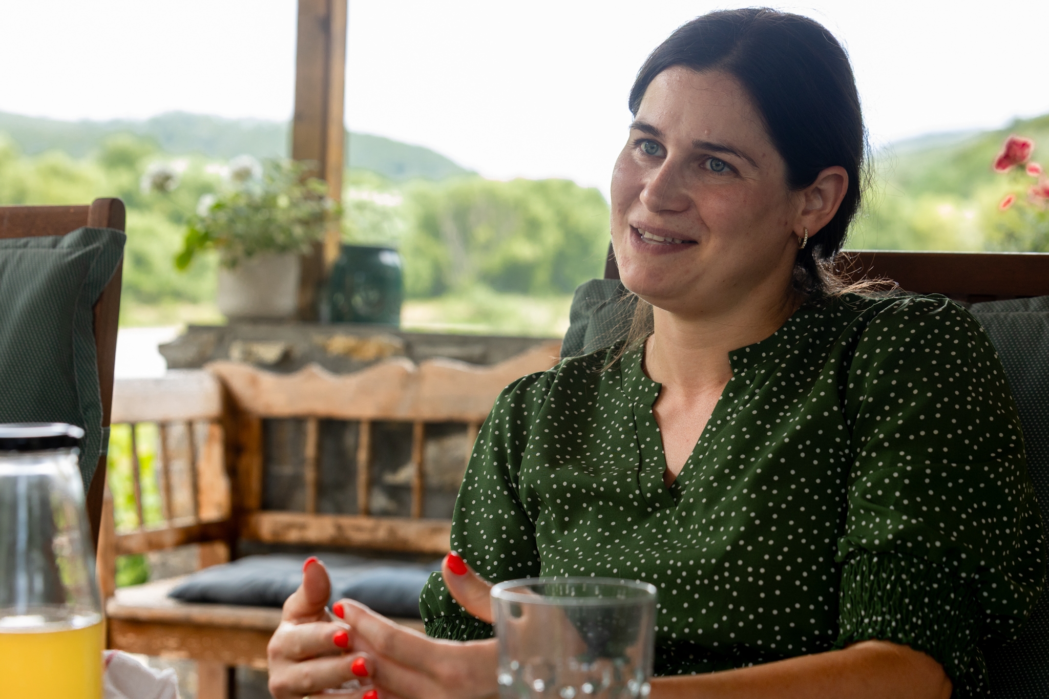 Közben elkészült a sütemény. „Nálunk ezt csak így lehet csinálni: gyorsan és hatékonyan, hogy mindenre jusson idő” – tölti ki a saját készítésű bodzaszörpöt Anna a poharakba.