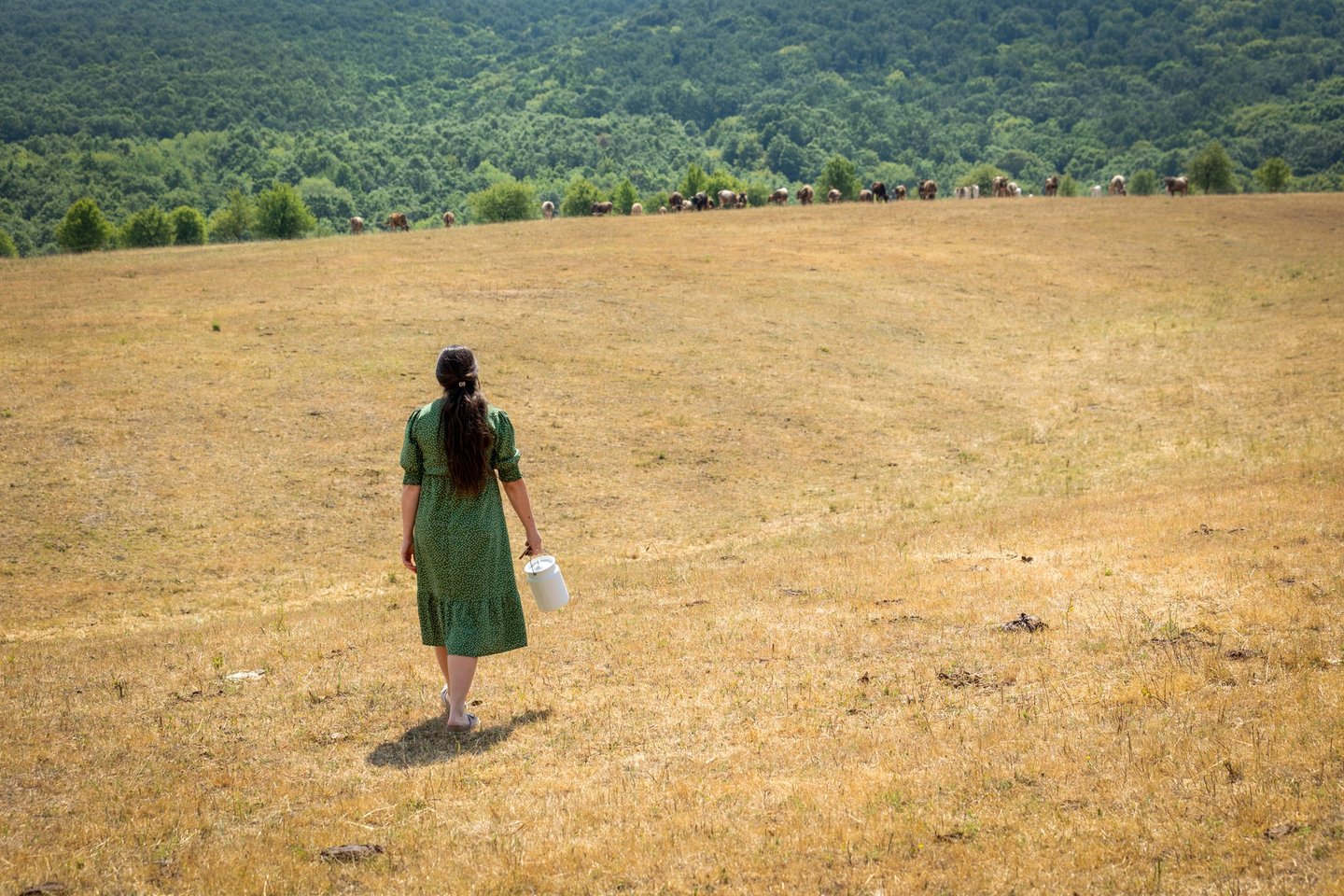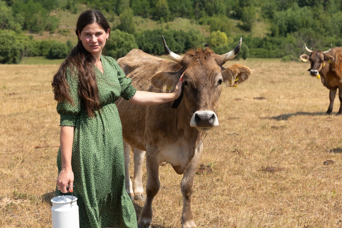 Közben elindulunk bejárni a birtok egy részét. Gyeeeertek! – hívja a marhákat Anna, aki arra is kész, hogy megfejje nekünk az első teheneik egyikét. Akik egyébként válaszolnak is neki. Azt mondja, annyira kezesek, hogy a mező közepén is megengedik neki. Már messziről szólongatja őket, engem kifejezetten megnyugtat, hogy mégsem indulnak el felénk mind az ötvenen. Bár van köztük egy hetes és néhány napos borjú is.