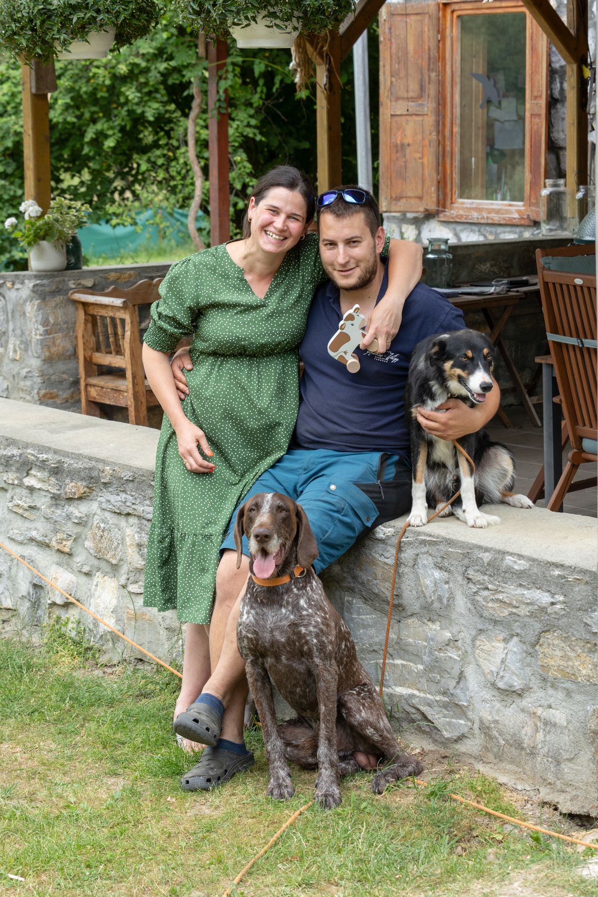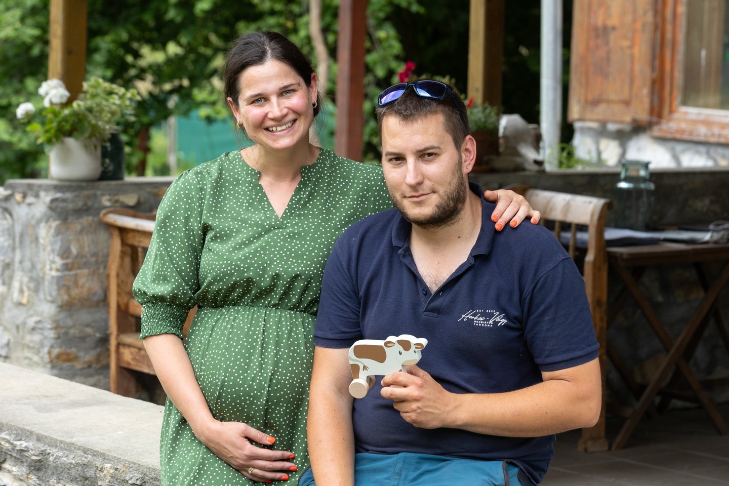 Az első találkozástól kezdve ezt a közös életet tervezték, erre gyűjtöttek már közösen. Volt persze mögöttük támogató szülői háttér Daniék részéről, akik bíztak a hegyoldalban legelő tehenek vízióját kergető fiatalokban és együtt találtak rá erre a területre. A ház, aminek most a konyhájában Anna a frissen főzött eperlekvárral keni a piskótát, egykor büfé volt: ipari konyhával, kiszolgáló térrel, halsütővel, vendégkörrel. Meg egy halas tóval. Aztán belefáradtak a tulajdonosok és felverte a gaz. Nem csak a romos épülethez kellett fantázia, hogy belelássák a jövőt, amikor 2020-ban ideköltözött a fiatal házaspár.