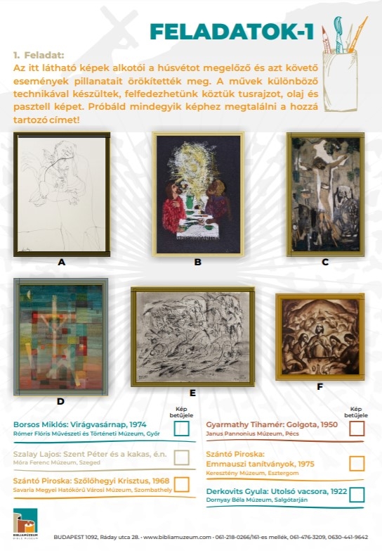 A Bibliamúzeum honlapján a korábbi feladatlapok is megtalálhatók, melyek közös családi beszélgetések alapjául is szolgálhatnak, de online gyermek-istentiszteleteken is jól alkalmazhatók. A gyerekek Párizs képzőművészetben betöltött szerepével, női alkotók munkáival, 20. századi magyar mesterművekkel és Albrecht Dürer munkásságával is megismerkedhetnek. Így a feladatlapok akár rajz- és művészettörténet-órák kiváló segédanyagai is lehetnek, míg ismét fogadhat látogatókat a Bibliamúzeum.