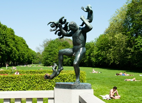 Munch egyik kortársának, Gustav Vigeland szobrásznak szintén van mondanivalója a ma embere számára. Az ő szoborcsoportja uralja a Vigelandsparkent. A kőbe vésett és bronzba öntött, megrázó erejű egyetemes érzések az emberi élet egészét átfogják. Evelyn Waugh angol regényíró „emberalatti állatkertnek” nevezte a monumentális alkotást, de szerintem ebben az esetben a számokkal igenis érdemes dobálózni, hiszen nem véletlen, hogy Skandinávia leglátogatottabb nevezetességét több mint egymillióan nézik meg egy év alatt. Vigeland az emberi kapcsolatok sokféleségét, haragot, erőszakot, szerelmet, öregséget, szexualitást, halált, egyszóval az életet formálta óriási kőtömbökbe.