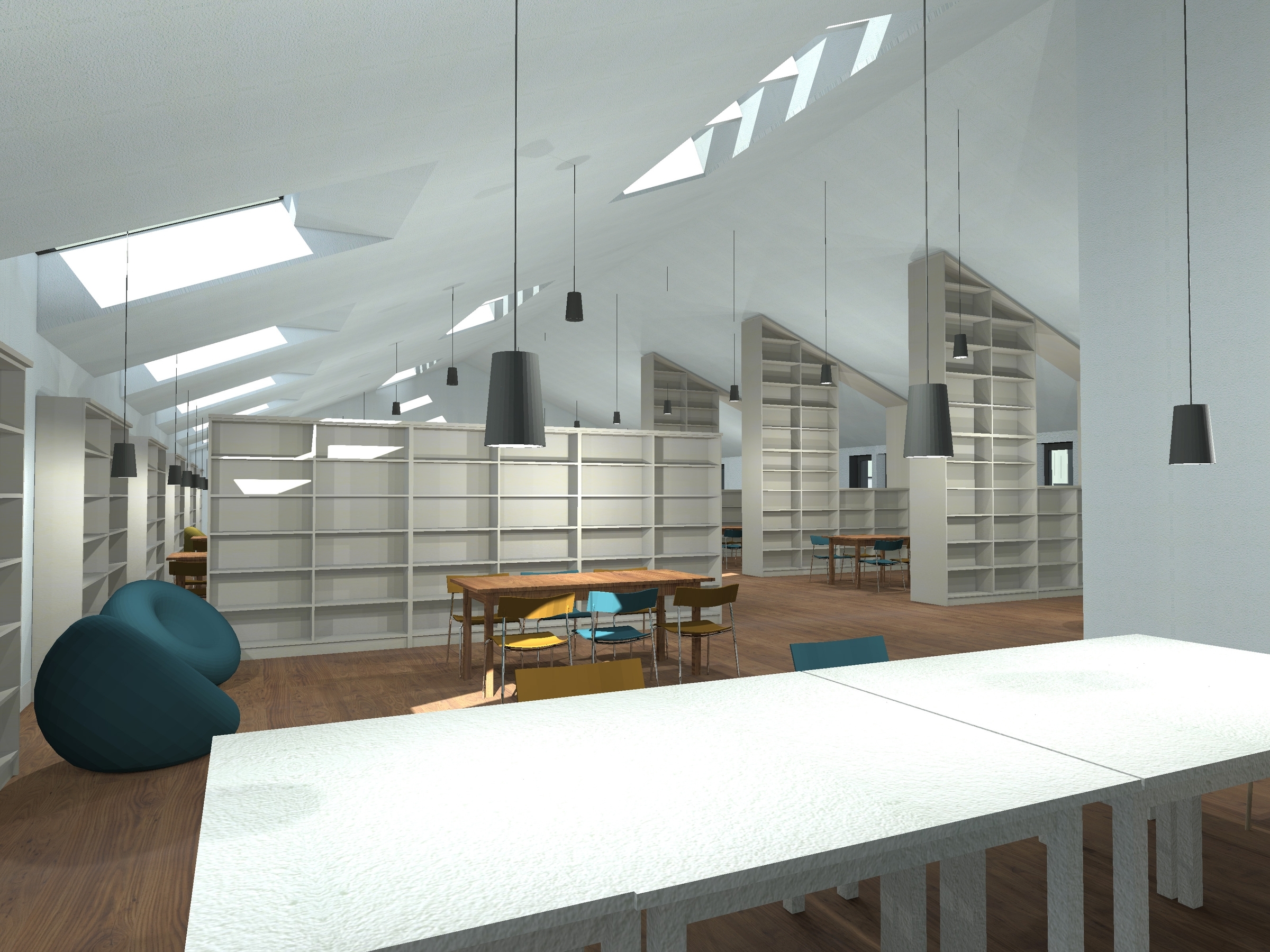 A tetőtérben alakítják ki az épület lelki központját. Itt kap helyet a kápolna, a hozzá kapcsolódó zeneteremmel, a spirituális és a Hallgatói Önkormányzat irodája, közösségi terem, valamint a Török Pál Kari Könyvtár. Ez utóbbi egy 24 órán át nyitva tartó közösségi központ, amely tanulószobaként is funkcionál. A kollégiumi szárny tetőszintjén a Markusovszky tér felé, valamint a Gellért-hegy panorámája felé is megnyíló tetőteraszokat alakítanak ki.