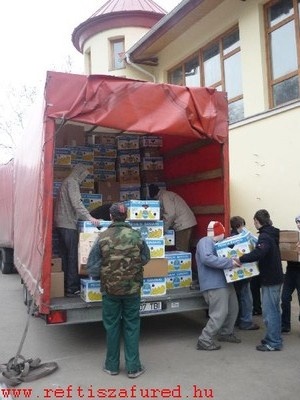 A két holland sofőrrel kedd déltájban érkezett meg a kamion Tiszafüredre, ahol majd két óra alatt lett lepakolva a sok adomány. Mint az előző években, most is a tiszafüredi református egyház volt a köztes állomás, mivel a füredieknek címzett iskolai felszerelések a rakomány 30%-át tették ki.