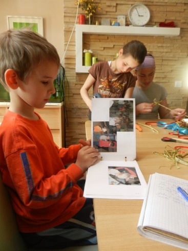 Kereszt- és családnevek kavalkádjában lassan mindenki előbújik a szép, új ház különböző szegleteiből. Mint az orgonasípok, felsorakozik Dorka, Szilvi, Nándi, Kornél, Viktória Napsugár, Márk – Peti nincs itthon. Ebben a házban mindenki Apának és Anyának szólítja Zsoltot és Ildikót, még ha ők nem is mindannyiuknak vér szerinti szüleik. Hamarosan az egész család körbeüli az asztalt, és a megtisztított fűzfavesszőkből a szorgos kezek fonatokat készítenek. Előkerülnek a szalagok, masnik, az újrahasznosításra váró díszek, a nagyobbak ollót és ragasztópisztolyt vesznek a kezükbe. Míg a kis tavaszi koszorúk készülnek, egyre többet és többet tudok meg a család életéről.