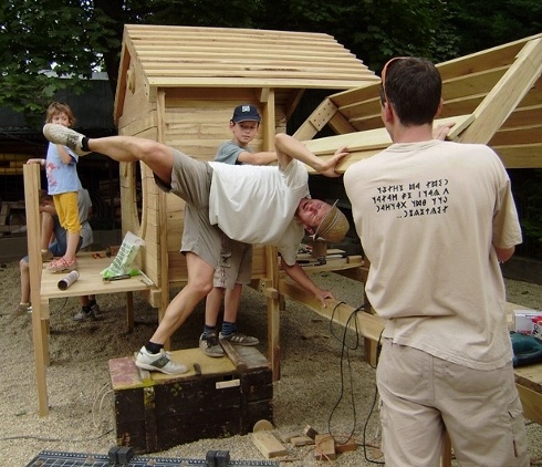 A munkát lelkes önkéntesek végzik: az ovis gyerekek szülei közül néhányan a Budai Református Gyülekezetbe járnak, hozzájuk csatlakoztak a közösség más tagjai is, valamint a Pasaréti Református Gyülekezetből és a Budahegyvidéki Református Egyházközségből is néhányan. A munkálatok az elmúlt hétvégén kezdődtek meg, két héten belül pedig szeretnék felépíteni a játszóteret Balla Gábor gyülekezeti tag, a Millenáris Park Zöld Péter játszóterét megálmodó faszobrász tervei alapján.