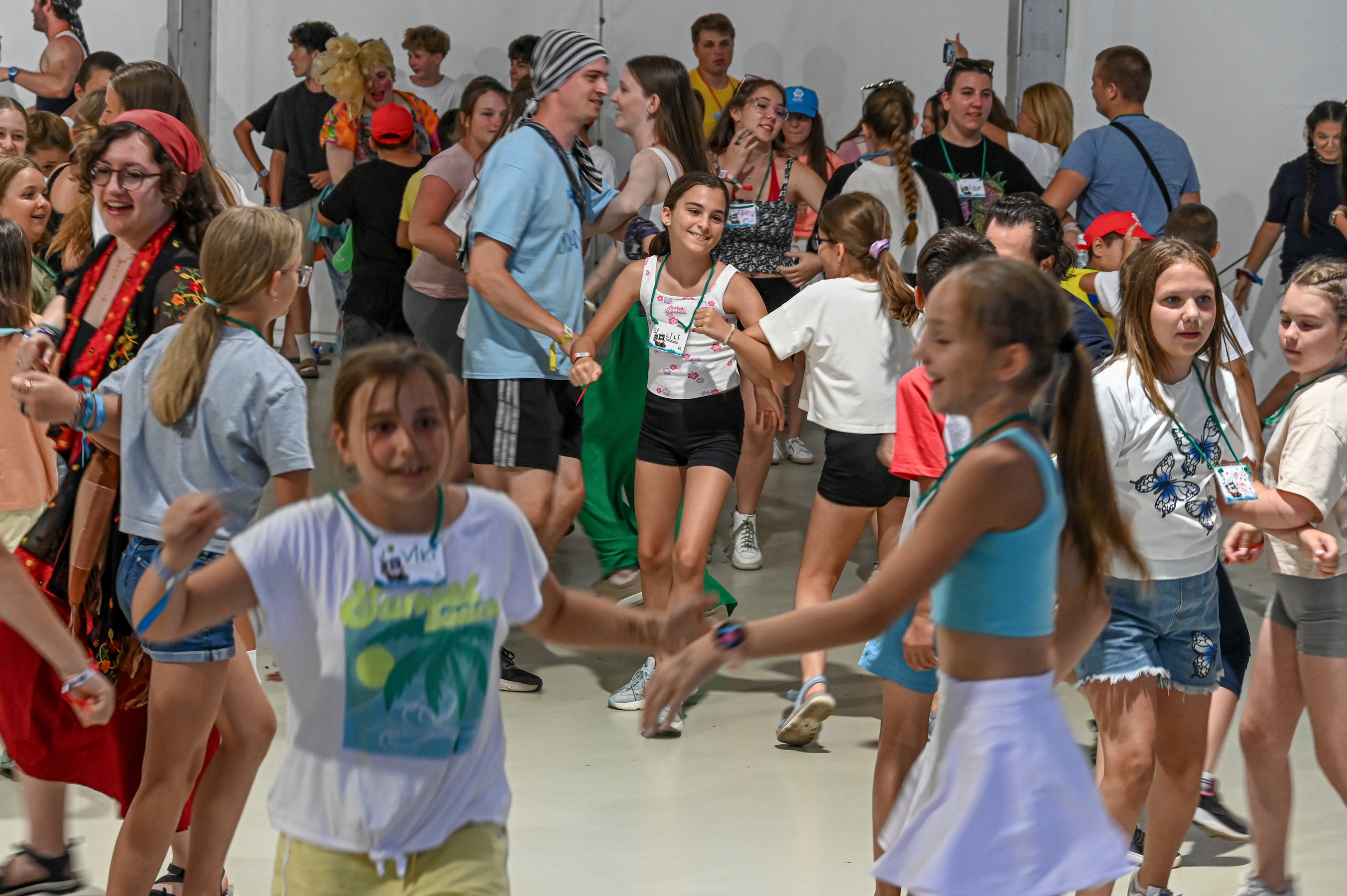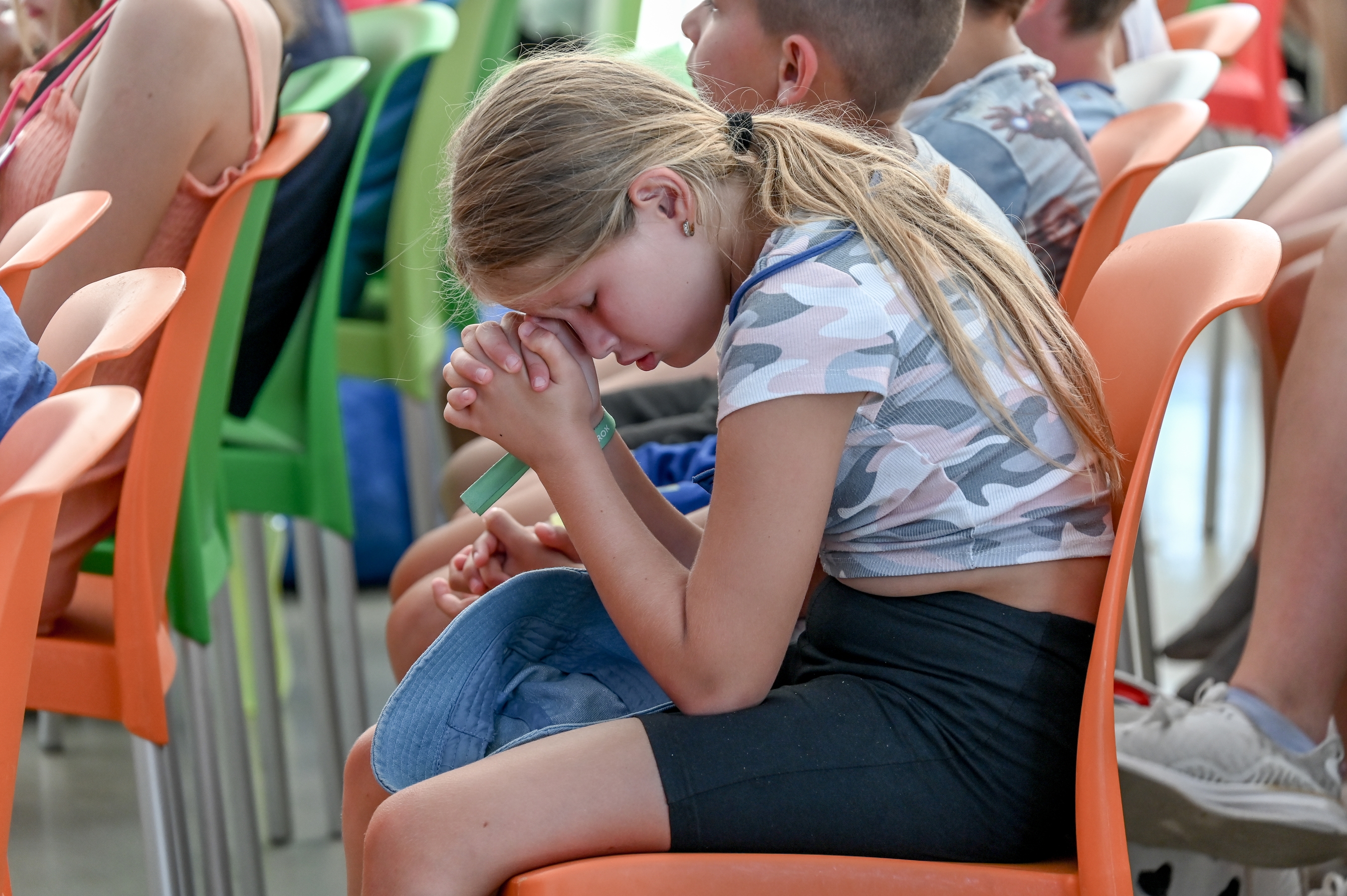Reggeli után álmos gyerekekkel és lelkes, sárga pólós kísérőikkel telik meg a nagysátor. A színpadról egy ruganyos segítő kérdezi hangosan, hogy fáradtak-e, mire a társaság jó hangosan zúgja: igeeeeen! A fáradt sereget azonban nemcsak a vidám önkéntes, hanem a közös éneklés is felrázza: Ez az a nap, mit az Úr szerzett – zeng a sátor.