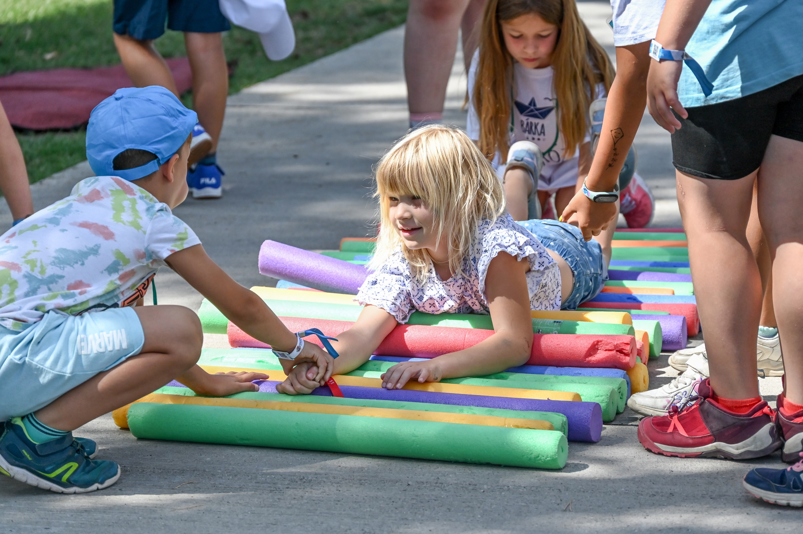 Kovács Nikolettának, a Bárka táborvezetőjének most nem a kreatív, hanem a mindent kézben tartó énjével sétálok a délelőtti élménypedagógiai műhelyek közt. Nico egyszerre laza és spontán, fegyelmezett és gondosan keretekhez ragaszkodó.