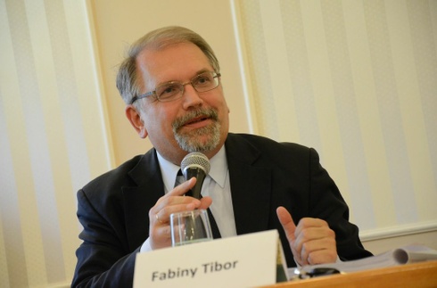 – Hadd hivatkozzam Prőhle Károly evangélikus professzor egyik vicces megjegyzésére, aki azt mondta: a római katolikus egyház rendkívül praktikus egyház. Ott ugyanis csak egy személy csalatkozhatatlan. Nálunk mindenki az – mondta Fabinyi Tibor.