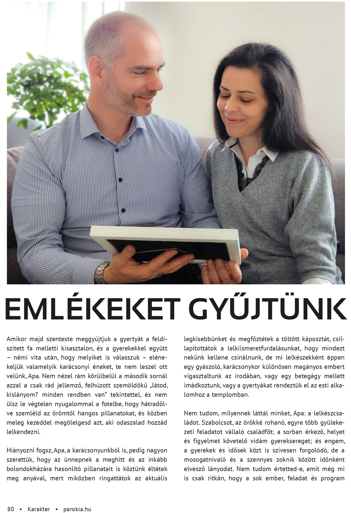 A Karakter magazin 2023. karácsonyi számában olvasható emberi történetek mind arról tanúskodnak, hogy mindenkinek van formálható karaktere, aki erre a világra született; mindenkire hat az, akivel vagy amivel szövetségre lép; és mindenkinek lehet hatása a közegre, ahol él. Méghozzá nem is csupán egyénként, hanem másokkal egy közösségként, egy testként – egyházként.