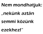 Érzem én a művész indulatát. Értem az érzületet. Azt is érteni vélem, hogy keserű helyzetekben nem is lehet mást mondani. De az ilyen állítások nem érnek fel azzal a bibliai igazsággal, amit Pál apostol mond a Római levélben: nincsen igaz ember! Mert Pál egyetemes antropológiai nyomorúságról beszél: minden egyes ember megváltásra szorul. S csak azért sorolja fel a bűn-katalógusban, hogy milyenek vagyunk valójában, mert látja a reménységet, élő hit van benne, hogy Isten Krisztusban beavatkozott, és mindezt meg akarja megváltoztatni. Egészen más az, amikor valaki emelkedetten vagy gorombán kijelenti, hogy neki semmi köze semmihez. Ám legyen. De azért azt kérem az uraktól, hogy legalább a prófétaság cégérét vegyék le a fejük fölül.