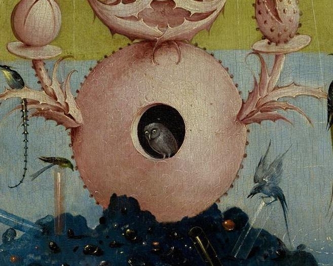 Kempis művében az üdvösség felé tartó lépcsőfokok közül az első a bűnöktől való megszabadulás. Ehhez elengedhetetlen a bűnök felismerése. Bosch festményeinek gyakori témája a bűnök bemutatása. Mint Békési kiemeli: a művész az ezekkel való szembesítéssel kívánja bevonni nézőit a helyes önvizsgálatba. Visszatérő motívuma e képeknek a bagoly, amely az emberi szabadság kockázataként válik bűn és bűnhődés forrásává. A kiméraszerű lények pedig vizuális megfogalmazásai annak, hogy a sátán „a már meglévő, Isten által teremtett világ istentelen akarat szerint szétdobált elemeiből szörnyetegként áll össze újra, amely az istenképű embert is szórakozottá, szétszóródottá, szétesetté zülleszti.”