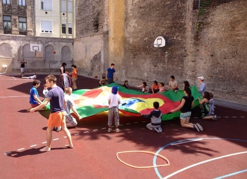 „Mindjárt jönnek az angolok is" - kiáltotta egy kislány a Mátyás téri Kesztyűgyár Közösségi Ház udvarán, hogy eligazítást adjon, amikor a táborról érdeklődöm. Még jó, hogy az írek nem hallják - jegyzem meg magamban. A gyerekek izgatottan szemlélnek minden érkezőt, rólam is azt remélik, angolul köszöntöm majd őket. Csalódásuk ellenére legalább elütjük az időt, míg meg nem érkeznek a misszionárius fiatalok. A gyerekek addig is egymás szavába vágva újságolják, hogy előző nap a János-hegyi kilátóhoz kirándultak, mennyire jól érzik magukat, és hogy milyen ügyesen elcsevegnek az ír fiatalokkal, hiszen már ők is jól beszélnek angolul. Józsefvárosi alsós és felsős gyerekek napközis táborában járunk, ahová idén különleges vendégek érkeztek, testet-lelket felüdítő programmal, sok-sok törődéssel és szeretettel. „Csókolom" - köszön el a cserfes kislány és már viharzik is el társaival együtt, hiszen most tényleg ismerőseiket pillantják meg az ajtóban. Csakhamar ölelik, puszilják őket, és szempillantás alatt előkerülnek a foglalkoztató játékok, hangszerek, buborékfújók is.