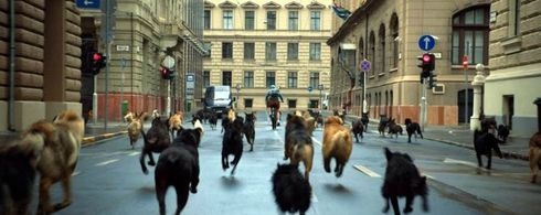 Hagen ezt persze nem tudja, nem is tudhatja, hiszen kutya. Annyit tud csupán, hogy kiűzetett az Édenből, hogy a gazdája ellökte, megcsalta, hogy elveszítette az első szeretetet, amiről azt hitte, soha el nem múlik. Hagen persze próbál beilleszkedni az emberek világába, de a kóbor kutyának nincs közöttünk helye. Csak üldözésben, megaláztatásban lehet része. Vagy ha nem, hát gyilkológéppé képezik ki. Mert Hagennek még van szíve. Éppen ezért lesz alkalmas arra, hogy kiképezzék a kutyaviadalokra. A „kiképzés” persze éheztetést, válogatott kínzásokat, megaláztatást, értelmetlen büntetéseket jelent, de a „tanfolyam” végére az egykor melegszívű, gyermek- és emberszerető jószágból vérengző és pusztító fenevad lesz. Itt kellene a filmnek az ajánlókban beígért thrillerbe átcsapnia, s talán a mozinézők egy része el is hiszi, hogy akciófilmet lát. Sokan talán nem is veszik észre azt a finom iróniát, amivel Mundruczó a kutyák bosszúhadjáratát ábrázolja. Mert valóban akciófilmes kliséket látunk, de mindez Mundruczó kutyákra konvertálta: a világmegmentő természetesen Hagen, aki immár Max, hogy valódi szuperhős neve legyen. A szuperhőst persze egy szépséges kutyalány menti meg, aki fel is áldozza az életét azért, hogy Lilit, a Gazdát elvezesse Maxhoz, s hogy ezzel megmentse az egyébként lelke mélyén még mindig jószándékú kutyát a TEK-esek golyóitól.