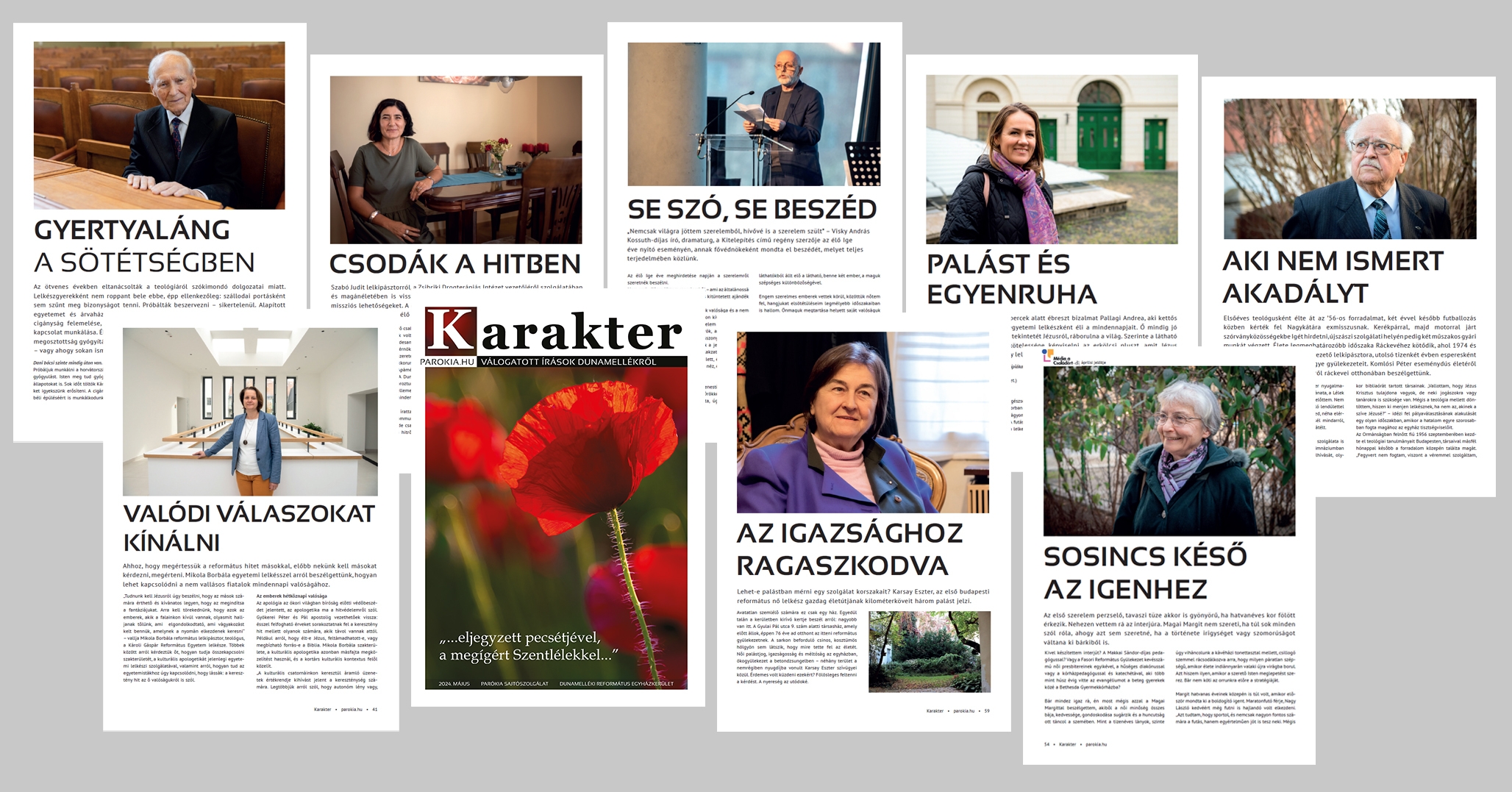 Tanúi ennek mindazok, akiknek történeteit a Karakter legfrissebb, pünkösdi számában olvashatják: emberek életéből évek vesznek el, mégis életeket nyernek. Látszólag mindenük megvan, de ők tusakodnak, Istent keresik. A gyenge így lehet erős: férfiak testvériségben összekapaszkodnak, mert a gyülekezet a helyreállás helye is. Otthon, ahol generációk találkozhatnak és megláthatják egymást. Ahol elhordozzák a másikat, hiányainak terhével együtt. Ahol új utakat taposnak ki, vállalva a kockázatot. Egy kicsiny mag is kihajt és szárba szökken, mert néhányan mernek kezdeményezni. Megtalálják a hangot a más nyelven beszélőkkel.
