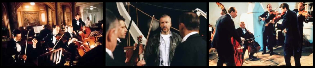 A csellóművész elmondása szerint James Cameron rendező, amikor visszanézte a felvételeket, nagyon elégedett volt a zenészek utolsó, megrendítő jelenetével. – Eredetileg az volt a szándéka, hogy bennünket is „beledob" a hideg vízbe, de ennél a pontnál letett erről az elképzeléséről, mert szerinte túl giccses lett volna a jelenet. Így megspórolta nekünk az „úszóleckét".
