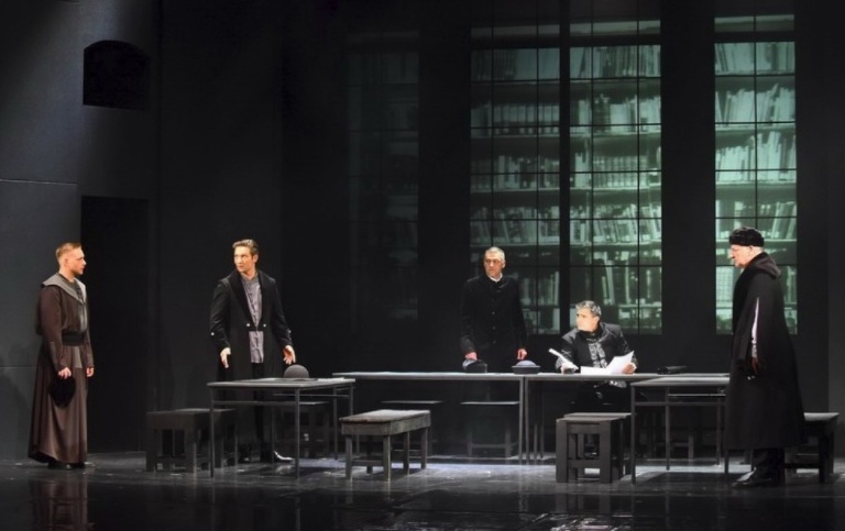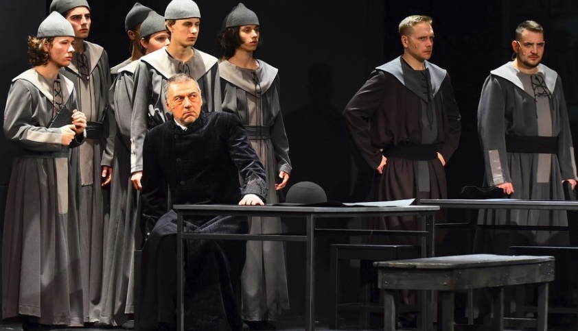Színpadi elidegenítő effektus például a fekete-szürke-fehér kombinációja, ám az alkotók még arra is ügyeltek, hogy a színészek ne korabeli ruhákat viseljenek. Lippainé fehérré csupaszított kontrasztja áll szemben a lelkész hivatalos öltözékével. A színekben kifejeződik a komorság, de egyszersmind a tisztaság és az azutáni vágy is. Különös jelenet, amikor látomásban éppen a rektor fia jelenik meg még gyermekként lelkészi palástban, mintha a gyermek képviselné az igazi hivatást, vagy annak lehetőségét. A színpad berendezése, az asztalok elrendezése és a terekben való mozgás is kontrasztos, hiszen a nagy asztal mellé tett két kisebb előjelzi a frakciók meglétét, azt a magyar sajátosságot, hogy a történetből mégsem lesz valamiféle ábrahámi nagy asztalközösség, együtt ülés, még a szorosság napjaiban sem. Mindegyik fél – akár egy tárgyalóteremben – saját asztalánál áll, néha ül. Ha ezt érezzük is a darabban, a befogadás a végére mégiscsak megtörténik. De most sem megy áldozat nélkül. Mindig szükséges az áldozat, az emberáldozat? – teszi fel a kérdést számunkra a darab. Csak úgy mennek előre a dolgok, ha valaki előzetesen belehal? Vannak idők, helyzetek, amikor igen. Csak úgy.