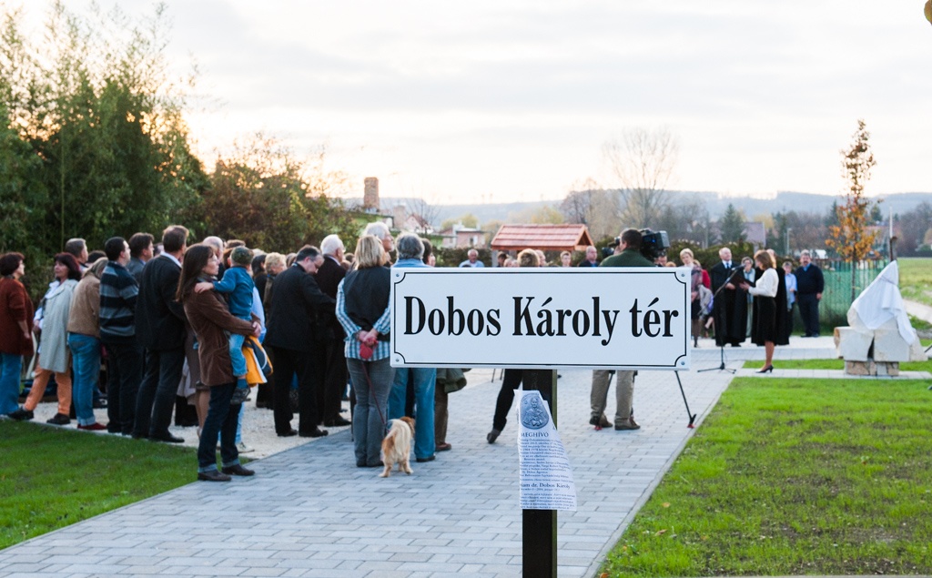 Dobos Károly (1902 – 2004) emlékét ezentúl tér is őrzi Nagykovácsiban az új református templom szomszédságában.