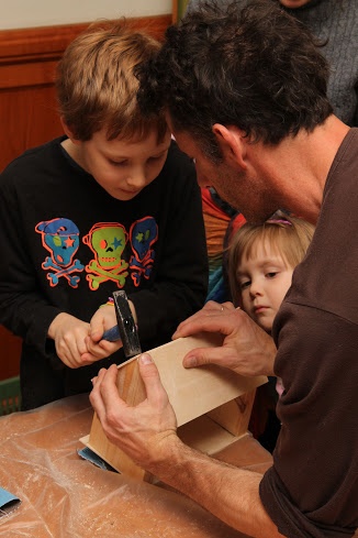 A házikóból Gabu előre elkészített egy mintapéldányt, amit az alkalom végén a Szivárványország napközi lakói kaptak meg ajándékul a budaiaktól.