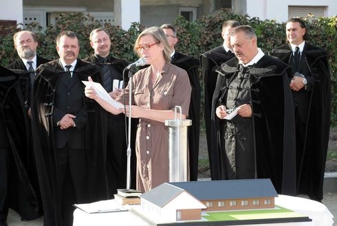 A hétvégi alapkőletételen Bogárdi Szabó István dunamelléki püspök hirdetett igét, és Takaró András esperes mondott imát. Az ünnepségen nem vett részt az otthonteremtő házaspár, de levélben köszöntötték az egybegyűlteket. „Az ötlet ugyan tőlünk származik, de semmire sem jutottunk volna, ha nem találunk olyan helybéli munkatársakat, akik nagy gondossággal és lelkesedéssel magukévá tették a gondolatot. Velük már évek óta munkálkodunk együtt a terv megvalósításán, amiért nagyon hálásak vagyunk nekik, és nagyra értékeljük a közreműködésüket. Eddig főleg elméleti síkon dolgoztunk velük, s törtük a fejünket a sok utunkban álló nehézség megoldásán, ezért örülünk most különösen annak, hogy az első kis sikert, az alapkő lerakását ünnepelhetjük." – fogalmaz levelében Madocsai Enikő és Atze van der Wijk.