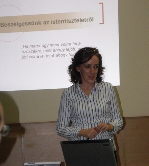 Ferenczi Andrea, a KRE BTK Pszichológiai Intézetének egyetemi adjunktusa - a többi között - arról beszélt nyitó előadásán, hogyan lehet emberközelibb módon tolmácsolni az egyházra bízott üzenetet. A szakember úgy vélekedett, meg kell szüntetni az „én" és a másik közötti határt, és elindulni a „mi" irányába." Hozzátette: A felebaráti reláció két alapvető összetevője a hit és a bizalom, amely az interperszonális (személyközi) kommunikáció legmagasabb formája.