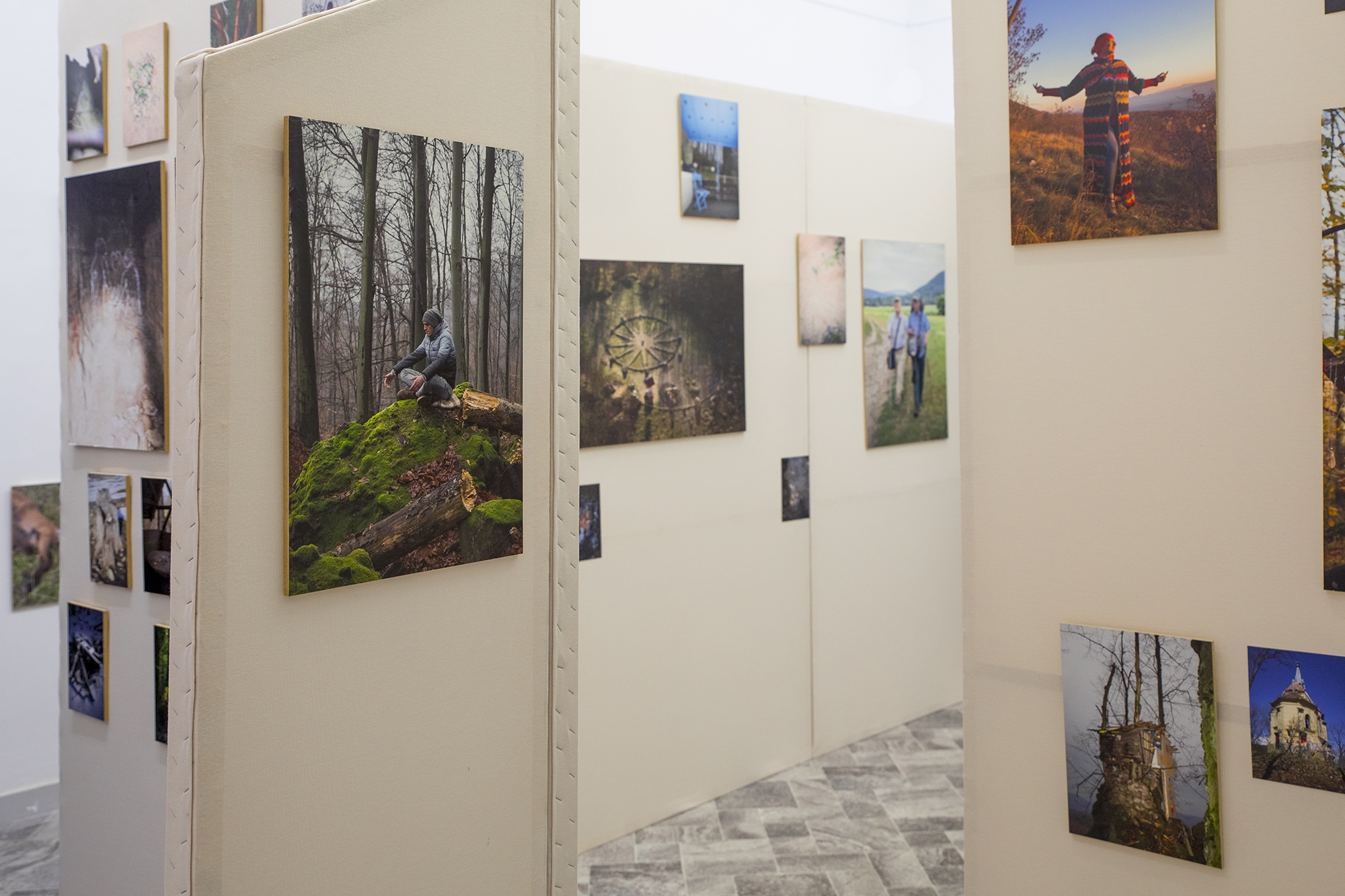 A kiállításon e logika mentén haladva olyan paravánokból felépített utat építettek, amelybe belépve a látogató valamilyen módon a fotográfus élményei mentén halad végig. Ennek során különböző méretű és kontextusú fényképeket lát, térképekkel találkozik, tárgyi emlékekkel léphet kapcsolatba. „Kirakunk olyan felületet is, ahol a látogató saját maga is le tud ülni reflektálni és nyomot hagyni. Ahogy a pilisi zarándokútvonalakat bejáró emberek is otthagyják a saját kis emlékeiket, hasonló módon itt is azt szeretnénk, hogy a kiállítás minden egyes interaktív reflexióval gazdagabb legyen.”