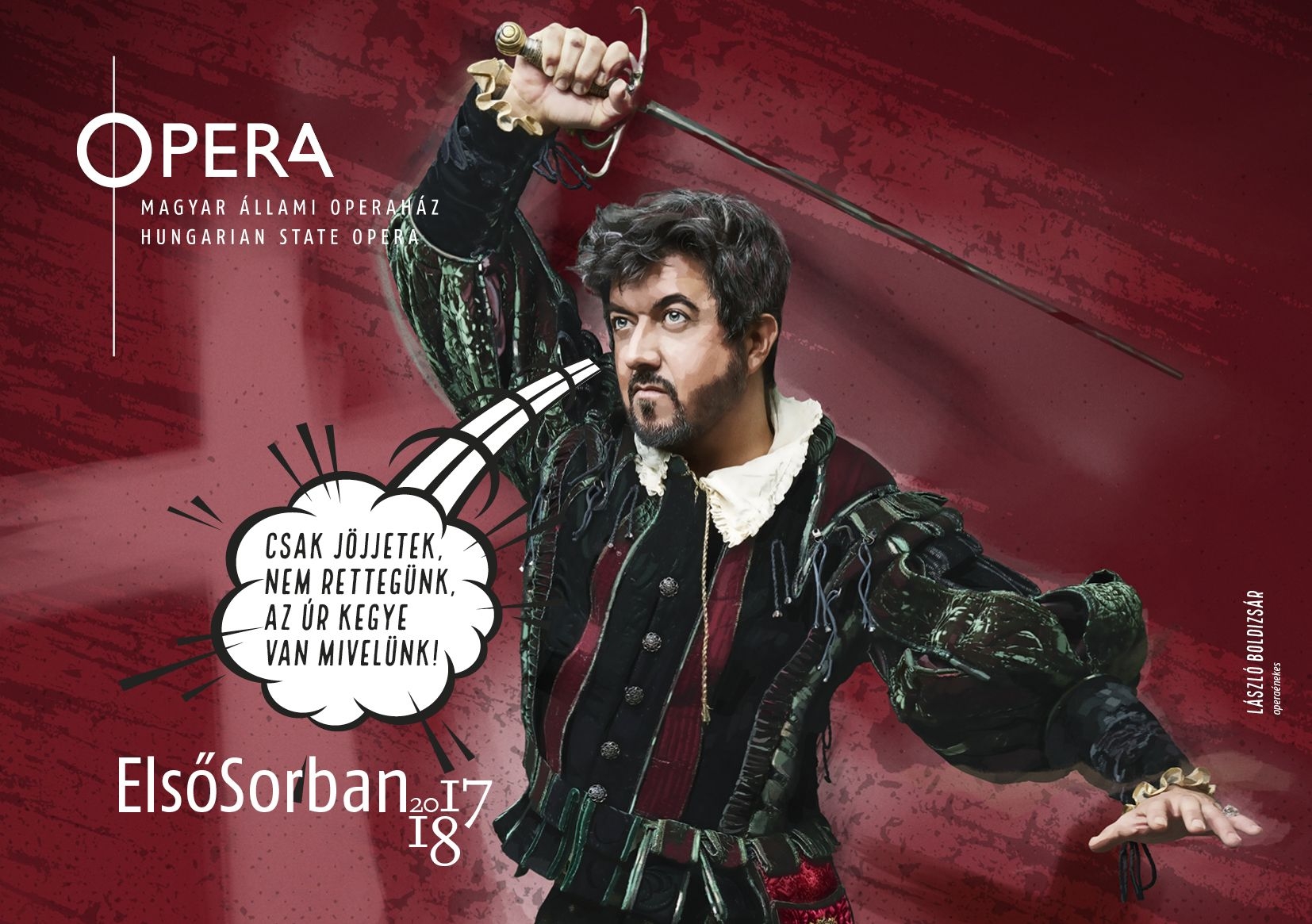 Az új évad meghirdetésével párhuzamosan indul az Opera ElsőSorban imázs kampányának harmadik és egyben záró darabja, ami a divat és a fotó után a társművészetek közül a képregény műfajából merített ihletett. A tizenkét – plusz egy bónusz – kreatívon a korábbi évekhez hasonlóan az intézmény elismert művészeit, valamint új bemutatóit és repertoárjának más kiemelt darabjait helyezik a középpontba. A hugenottákat László Boldizsár kelti életre.