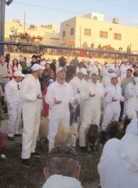 Az ünneplő samaritánusok összejövetelét számos turista figyelemmel kísérte, a számukra ismeretlen áldozati kultusszal járó szokatlan látványt és szagokat a talpraesett helybéli gyerekektől vásárolt frissítők tették emészthetőbbé. Ötven báránynak szegték torkát naplementekor a Kirjat Luza nevű samaritánus településen, az egyetlen zsidó hagyományhoz kapcsolódó vallásos közösségben, ahol az egyiptomi kivonulásra emlékezve húsvétkor a mai napig állatot áldoznak.