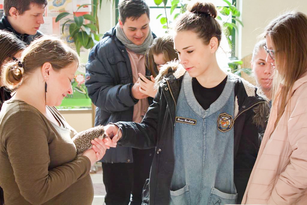 Az aulában elhelyezett tárolókban trófeákat, különféle elhullajtott agancsokat és madárpreparátumokat mutattunk be. Dísznövények, cserepes virágok, kaktuszok és kagylók, ásványok bemutatása mellett idén is nagy sikert aratott a Csillagközi Süntanya törpesünsimogatója. Meg lehetett simogatni, kézbe lehetett venni a szelíd jószágokat, amelyeket a tavalyi bemutatót követően többen már névről ismertek, és ismerősként köszöntöttek. Az aula másik pontján törpenyulak és magyar óriás nyúl is helyet kapott, hónapokra elegendő simogatásmennyiséget begyűjtve, Kovács Henrietta és Csernyi Patrik tenyésztők jóvoltából.
