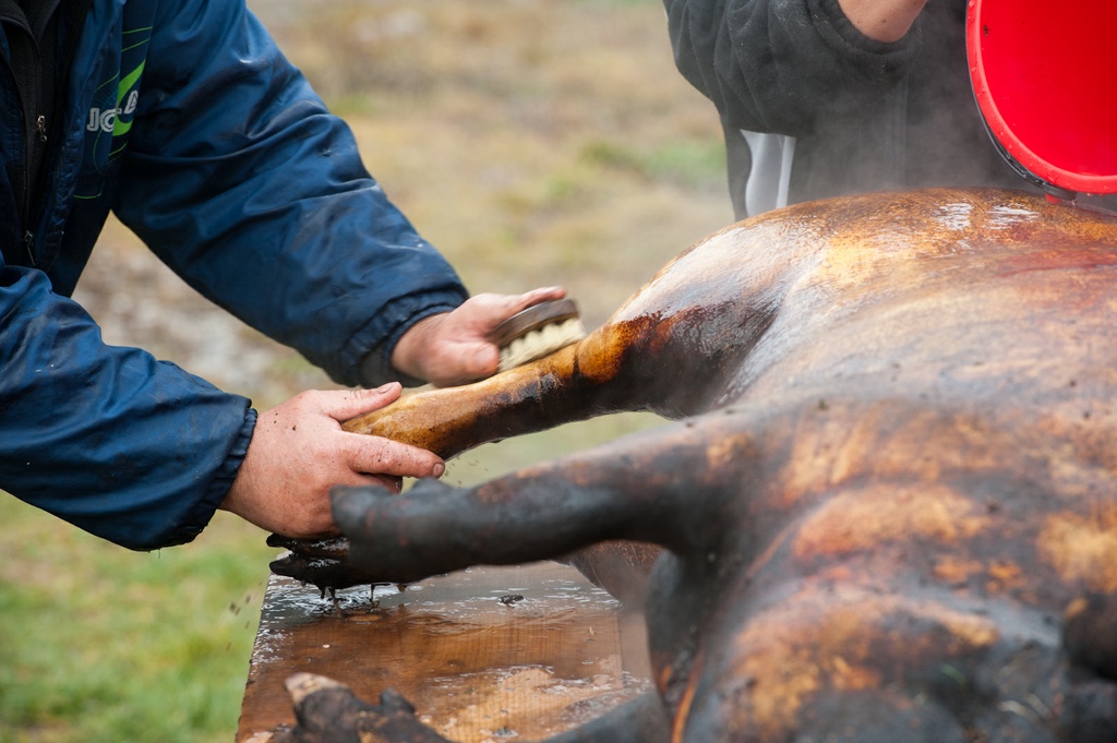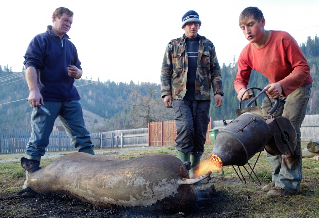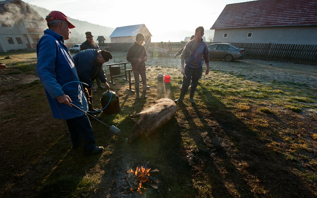 - Forró vizet gyorsan, kifogyott a butéliábul a gáz! - kiáltja a hidegségi vendégház gazdasszonya, mire a konyhában dologra váró, szorgos székely asszonyok azonnal felkapják a vedreket. A férfiak a halványkék ég alatt az udvar elejében perzselik a malacot.
