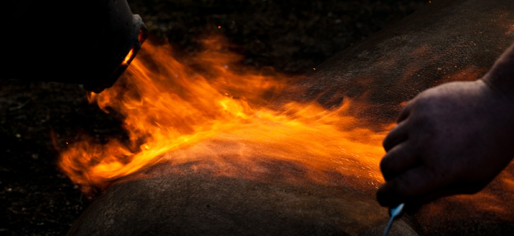 Pirospozsgás, széporrú legény rakja a tüzet serényen ott, ahol ritkásabb a megkeményedett fű. Az ő tüzecskéje forrón nyeli a halványsárga gyújtóst, de a hosszú lángot hányó malacperzselő igencsak köhög. Rátermettségét igazolandó az egyik dolgos kéz tulajdonosa kienged a teli palack gázból is valamennyit. Mivel ez sem használ, lefejtik az összeázott cetlit a palack oldaláról, és a pirospozsgás gyerek - akinek a sapkájára addigra sok szálka tapadt -, elkezdi silabizálni a feliratot.