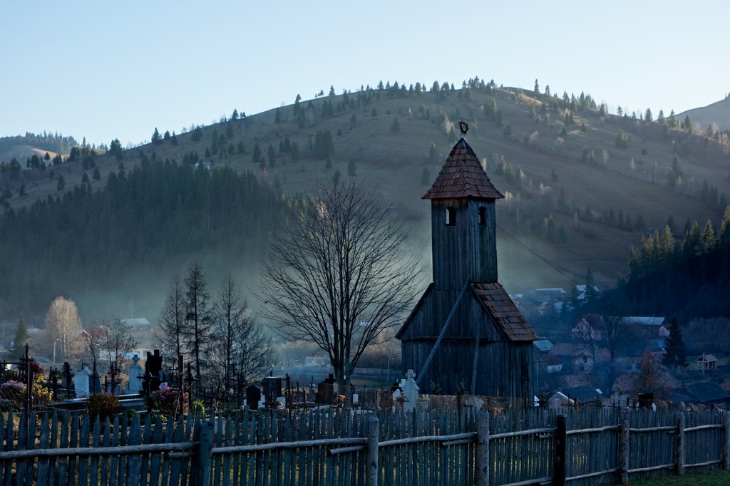 Mintha egy régi diafilmtekercset vetítenének elénk - nehéz elhinni, hogy a vásznon mi is ott vagyunk, eleven valónkban. A hideg levegőben felfrissült fejjel is meg-meglepnek a mesébe illő képrészletek: a környező hegyek, a faluhatár lankáin tarkálló temető a kis fakápolnával, a párolgó kerítéslécek az udvar végében.