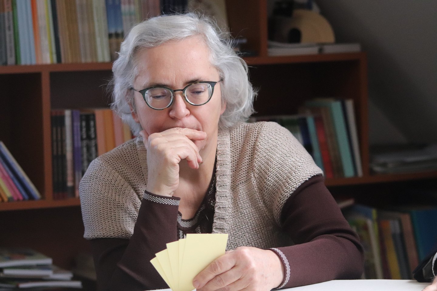A játék beszélgetős része következik. A kérdéseket összeállító Miklya Zsolt húz egy kártyát. Hosszan hallgat, gondolkodik, a csöndet Damásdi Dénesné Judit nevetve töri meg a „Váratlanul ért a kérdés? De hát te írtad!” közbevetéssel. Zsolt válasza csöndesíti el a derűs, hangos társaságot. Talál a kérdés, átgondoltan válaszol. Aztán sorra mindenkitől jönnek az őszinte, meglepő válaszok.