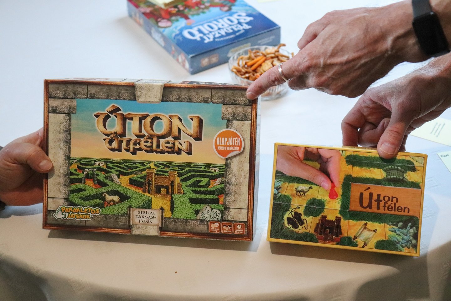 „Még jó, hogy nincs nálam több pénz, mindet el tudnám itt költeni” – ül az asztalhoz fejét rázva Arnold atya a protestáns Parakletos könyv- és játékbolt emeletén, Kiskunfélegyházán. Egy beszélgetésindító társasjátékot tesztelünk együtt Damásdi Dénesné Judittal és csapatával, mert kíváncsiak vagyunk, hogyan zajlik itt az értékteremtés hónapról hónapra, a gondolattól a nyomdába kerülésig.