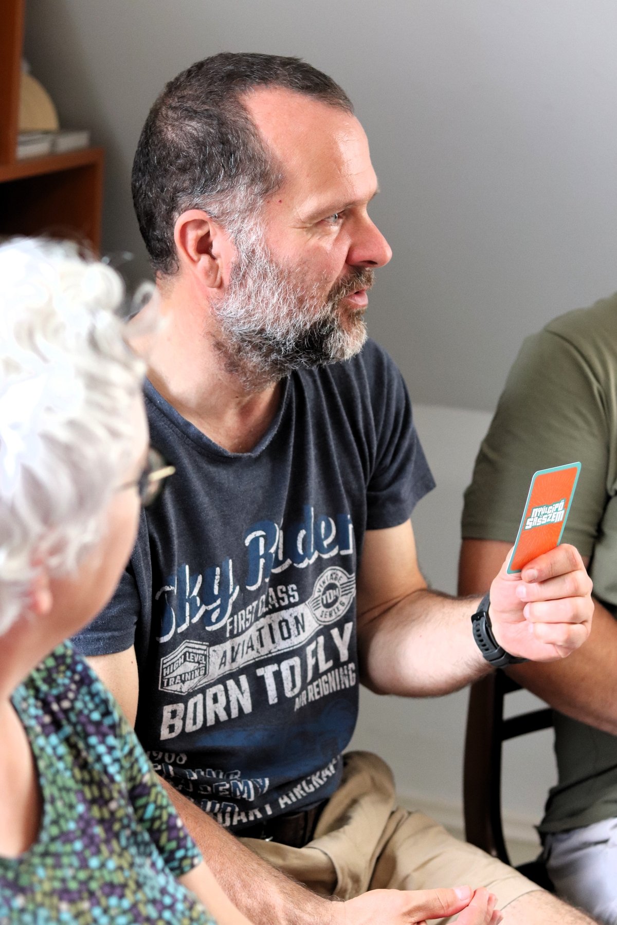 Ennek az a következménye, hogy kizökkenünk, és spontán beszélgetni kezdünk egészen mély családi, hitéleti dolgokról. Valaki próbálkozik a visszatereléssel, „inkább a játékot folytassuk” –, ám Damásdi Dénesné Judit mindenkit megnyugtat: „eljutottunk oda, ami a jó beszélgetős játékokra jellemző, hogy már kártya nélkül is megy.” Erre erősít rá Miklya Zsolt is, szerinte a játék „katalizátor”, lényege, hogy kilép önmagából, és marad a beszélgetés.