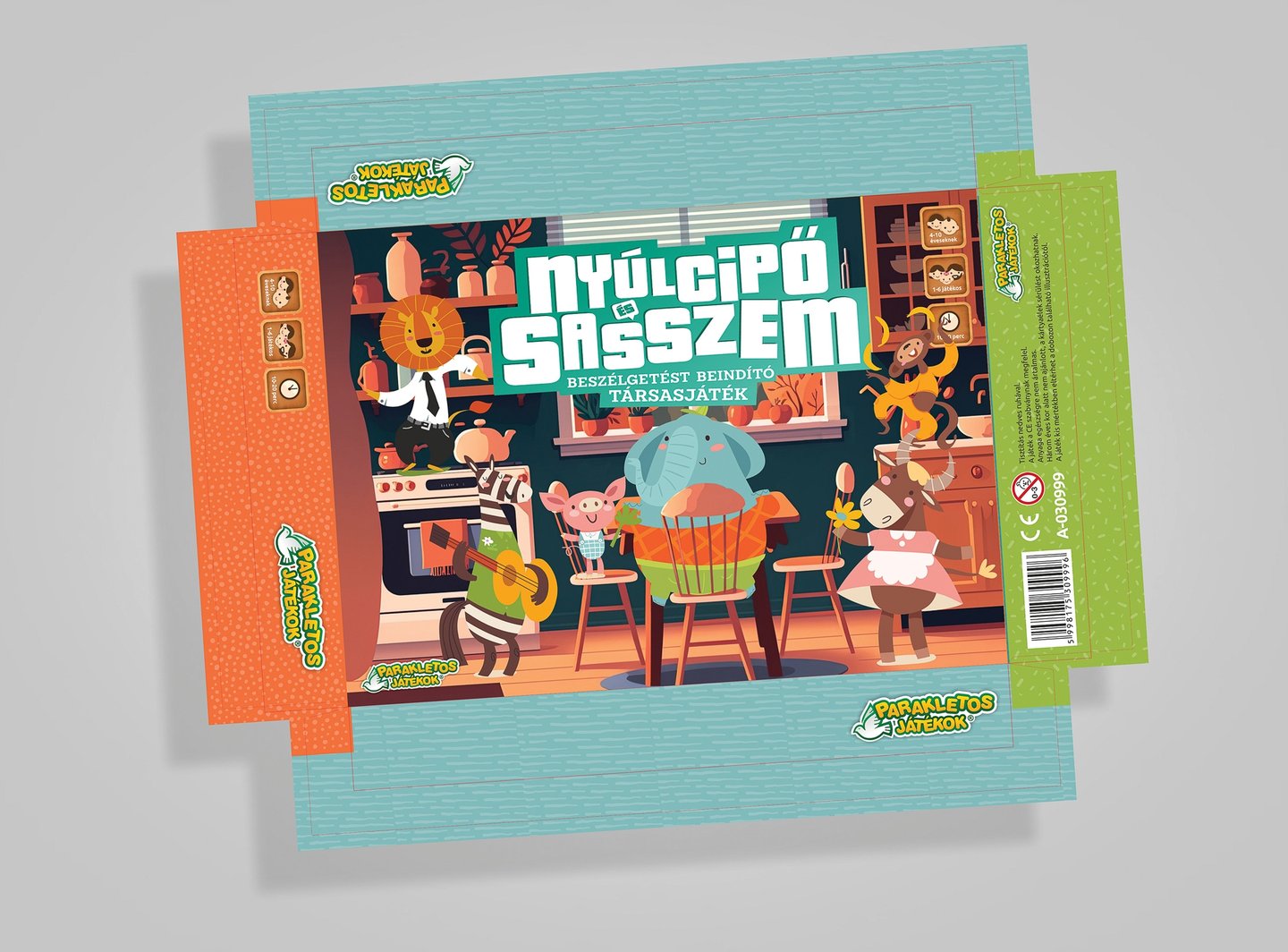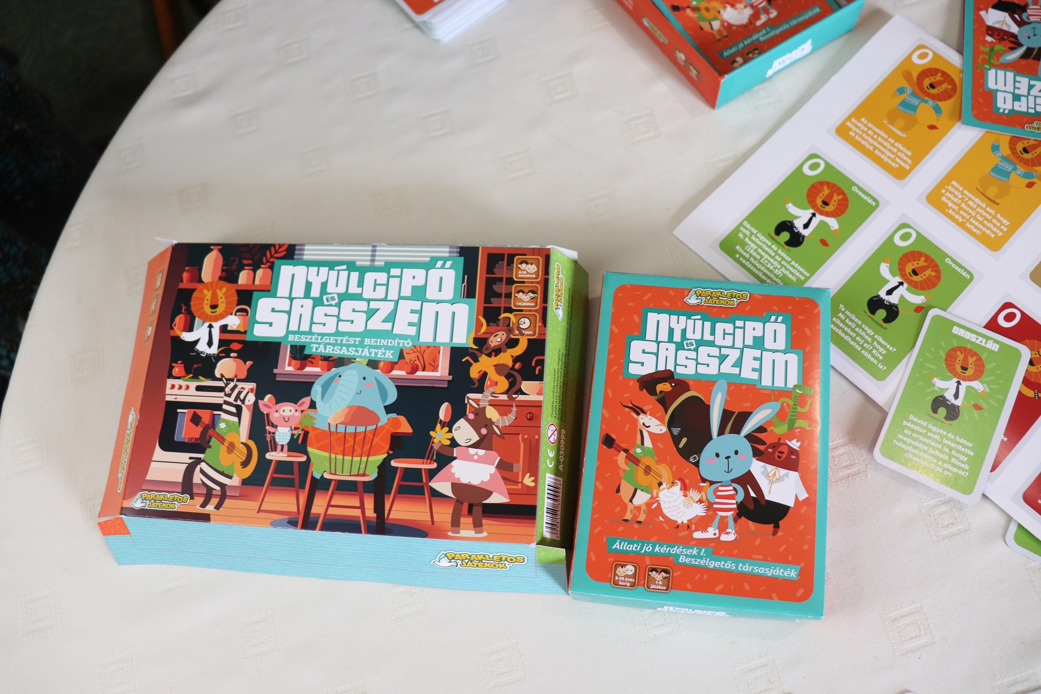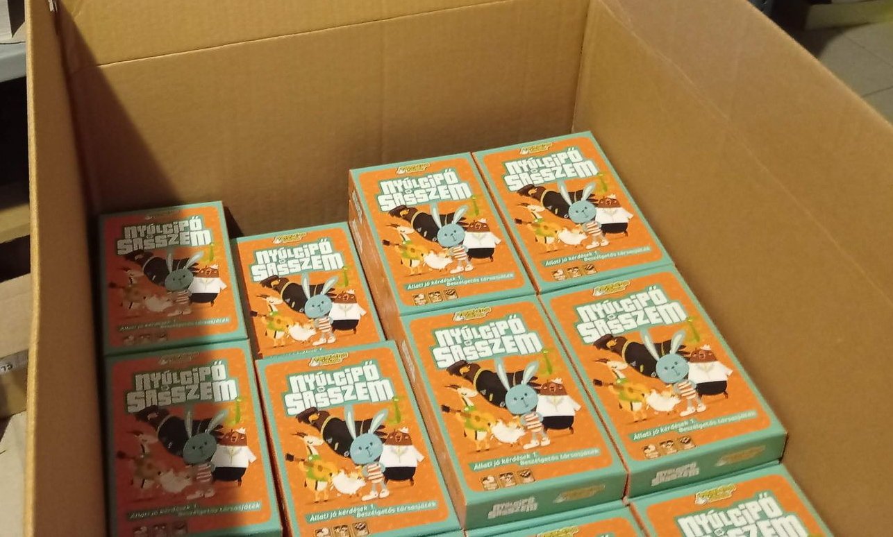 Elkészülnek a kártyák. A doboz első terve is kész, de ezt inkább még áttervezik. Viszont a játék neve eldőlt: „Nyúlcipő és sasszem – Állati jó kérdések 1.”