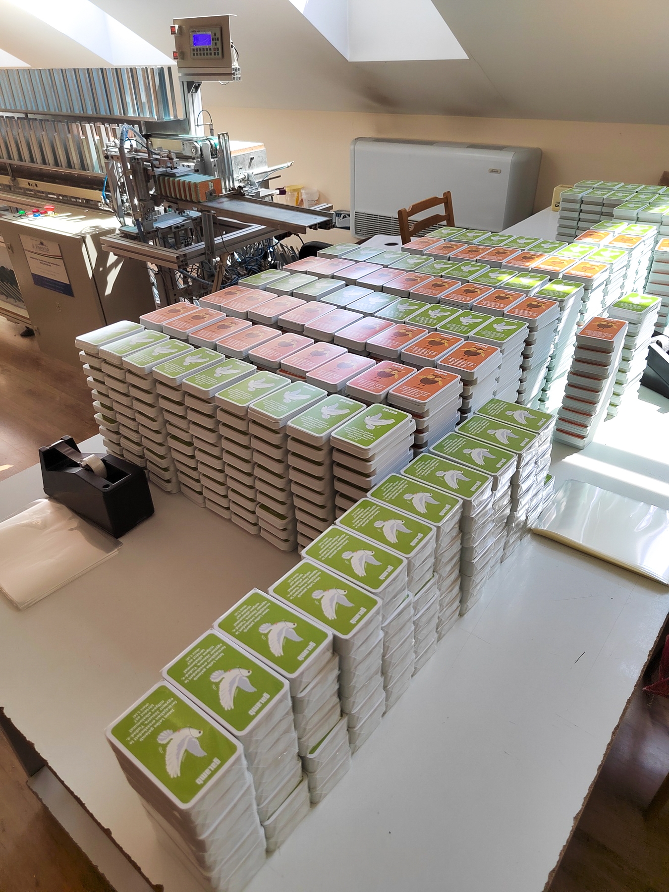 Augusztus 15-re már a tervezett mennyiség fele, ezer darab játék hozzávalói elkészültek. A már említett munkaerőhiány miatt a Parakletos munkatársai napokig dobozolják a kártyákat. Ezt követően mennek a társasok Kecskemétre, ahol lefóliázzák őket. Augusztus 23-án felkerül a webshopba a játék, még aznap eladják az első darabot.