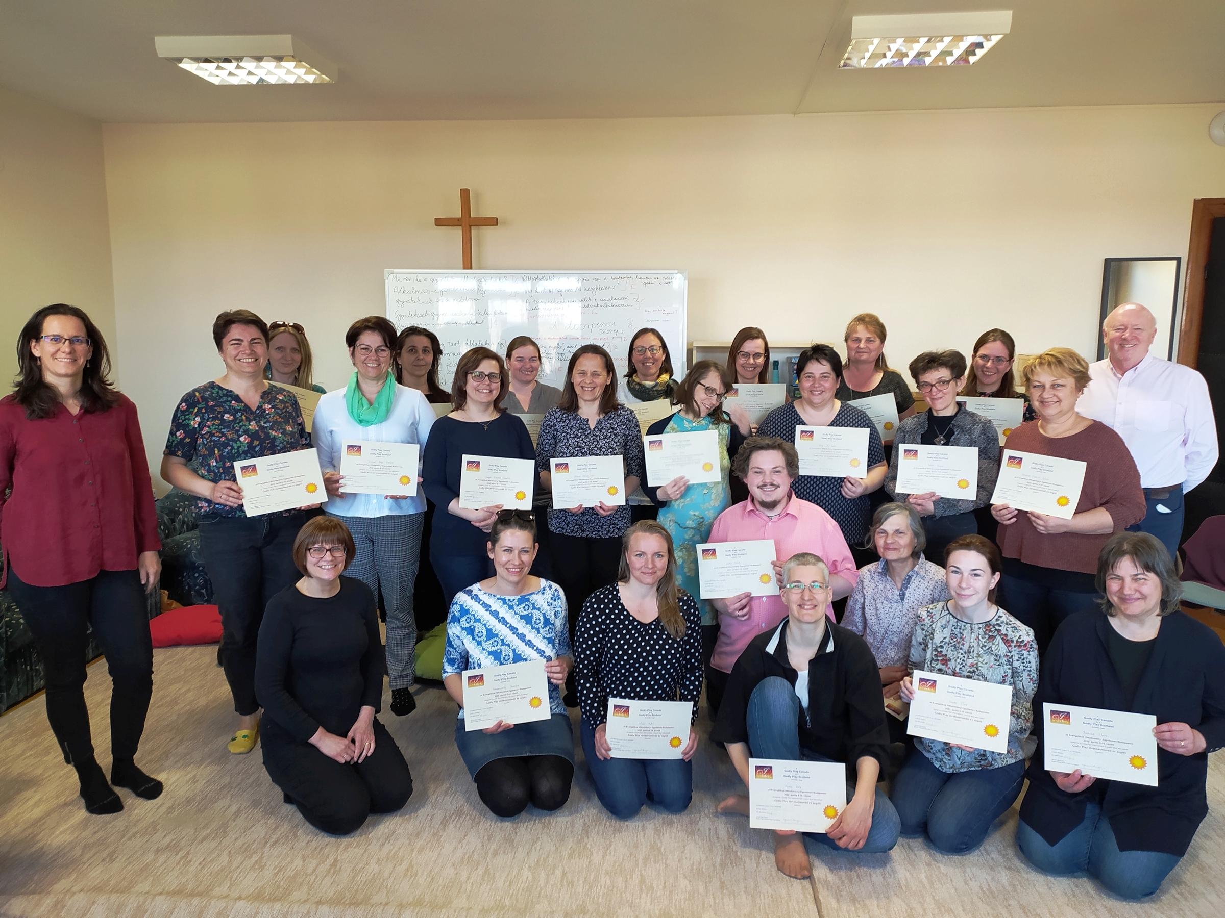 Eszternek Skóciában nyílt lehetősége személyesen megismerkednie a Godly Playjel négy évvel ezelőtt. „Tamás elnyert egy egyéves kutatói ösztöndíjat a Skót Egyháztól, és mi a családunkkal elkísértük őt. Korábban is hallottam már a Godly Playről, olvastam is róla, de Skóciában vehettem részt először ilyen alkalmon, és amikor láttam, hogyan működik, annyira megtetszett, hogy elvégeztem a hivatalos Godly Play tréninget, amelynek a végén én is Godly Play storyteller, azaz történetmondó lettem” – mesélte Eszter. Magyarországon ő volt az első ezzel a képesítéssel, és amikor hazajöttek 2019-ben, akkor ökumenikus körben bemutató alkalmakat tartott a dunakeszi gyülekezetek hitoktatóinak, gyerekmunkásainak, presbitereinek. Mivel tetszést aratott, a református gyülekezet is elhatározta, hogy alkalmazni fogják a módszert.